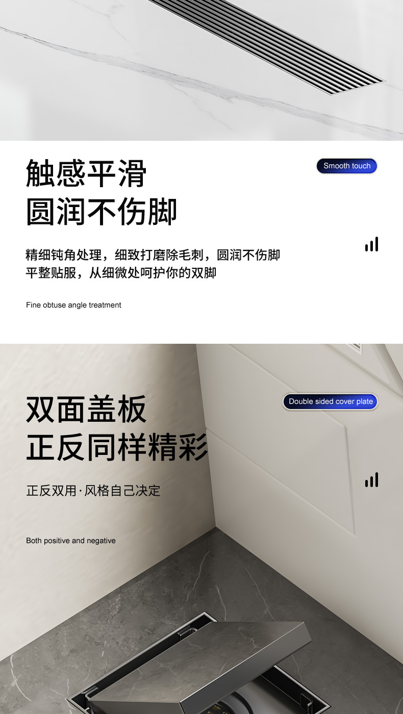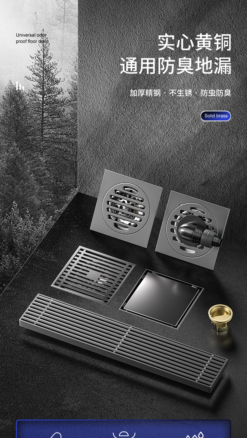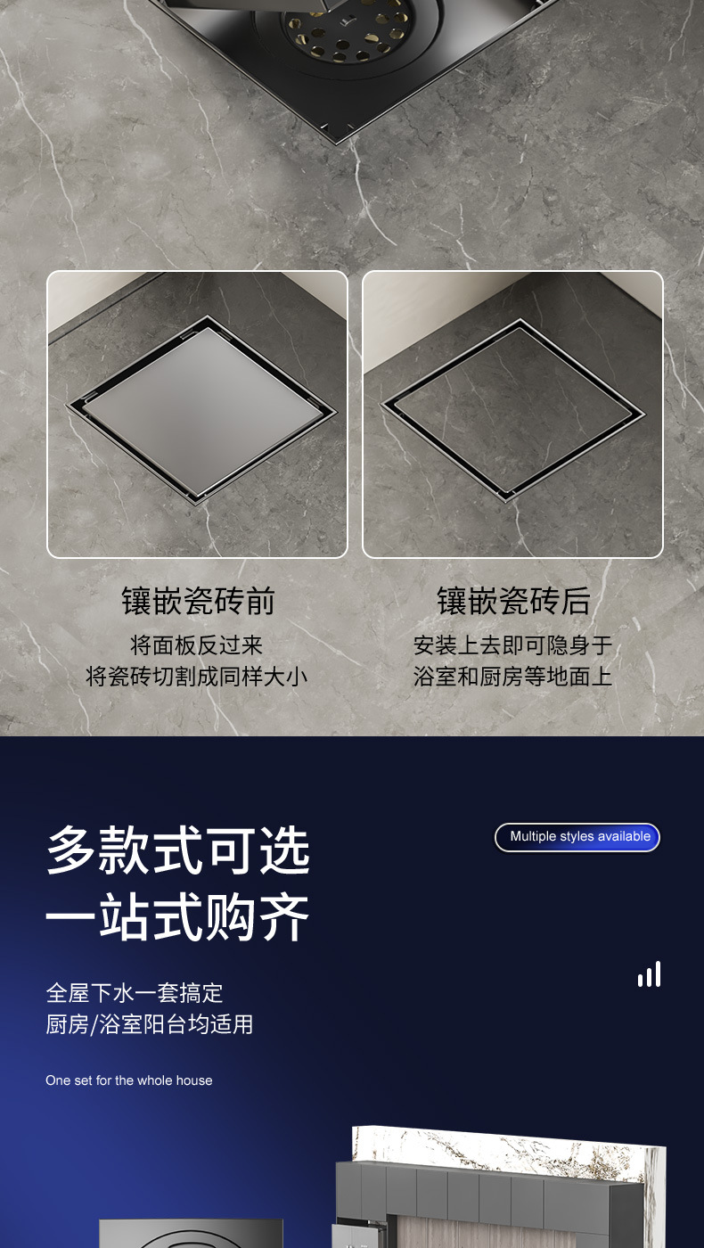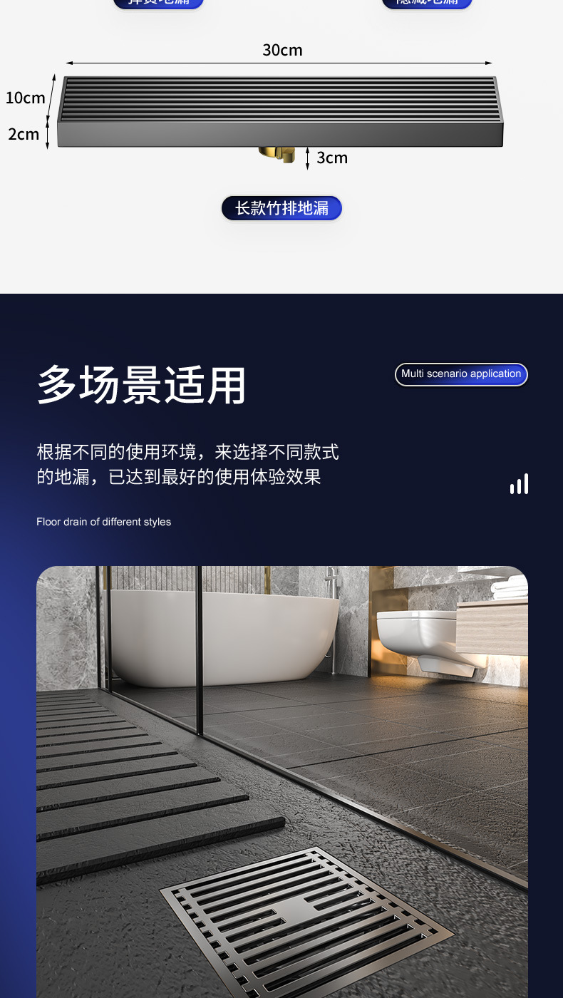 304不锈钢防臭隐形地漏枪灰色全铜地漏芯卫生间淋浴房洗衣机两用