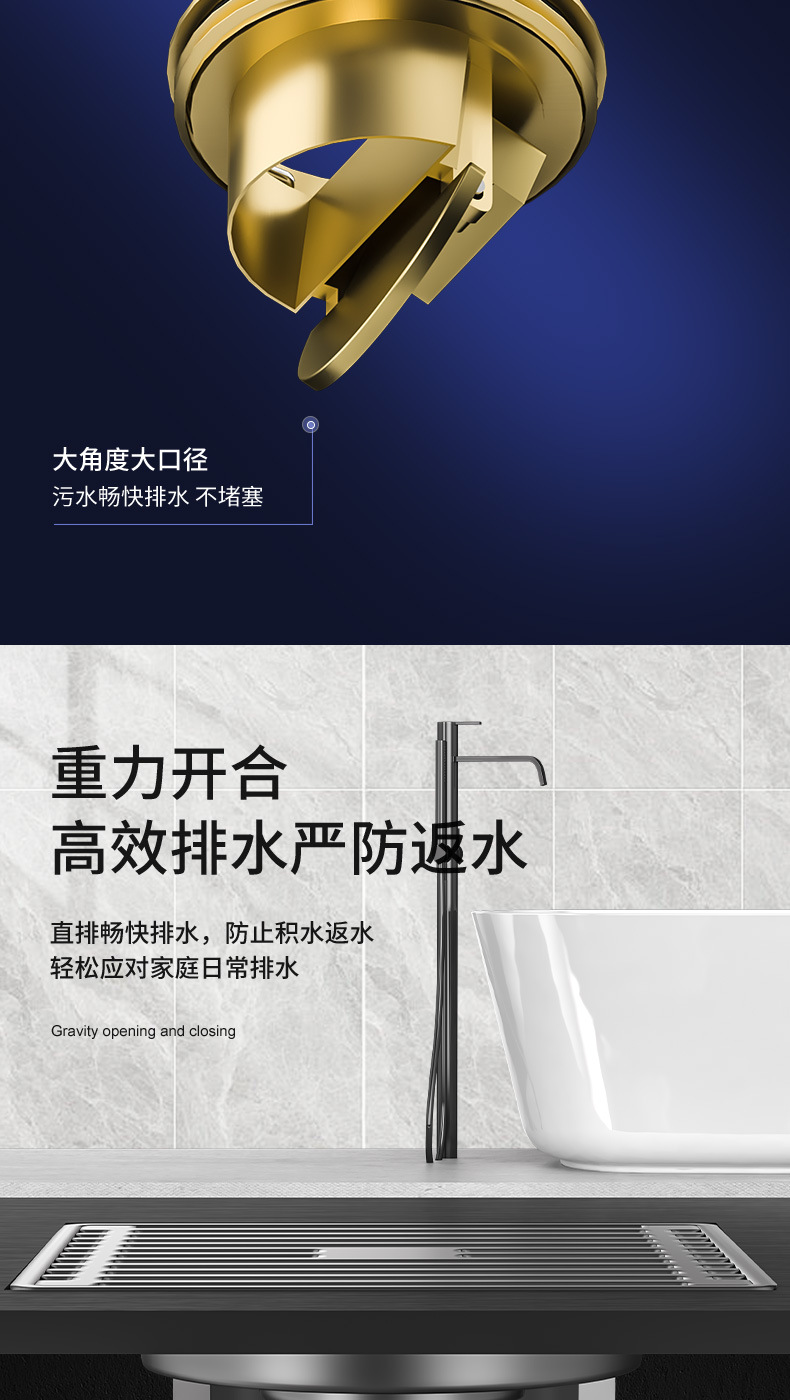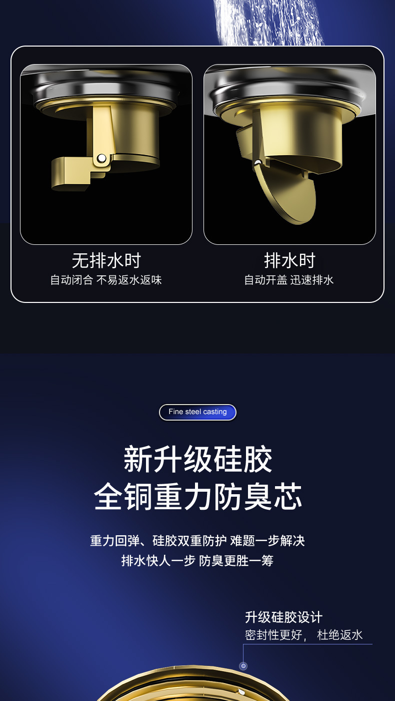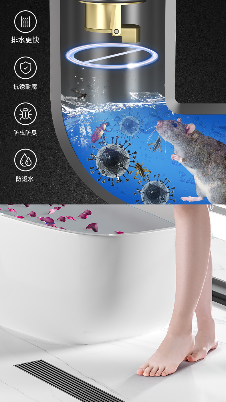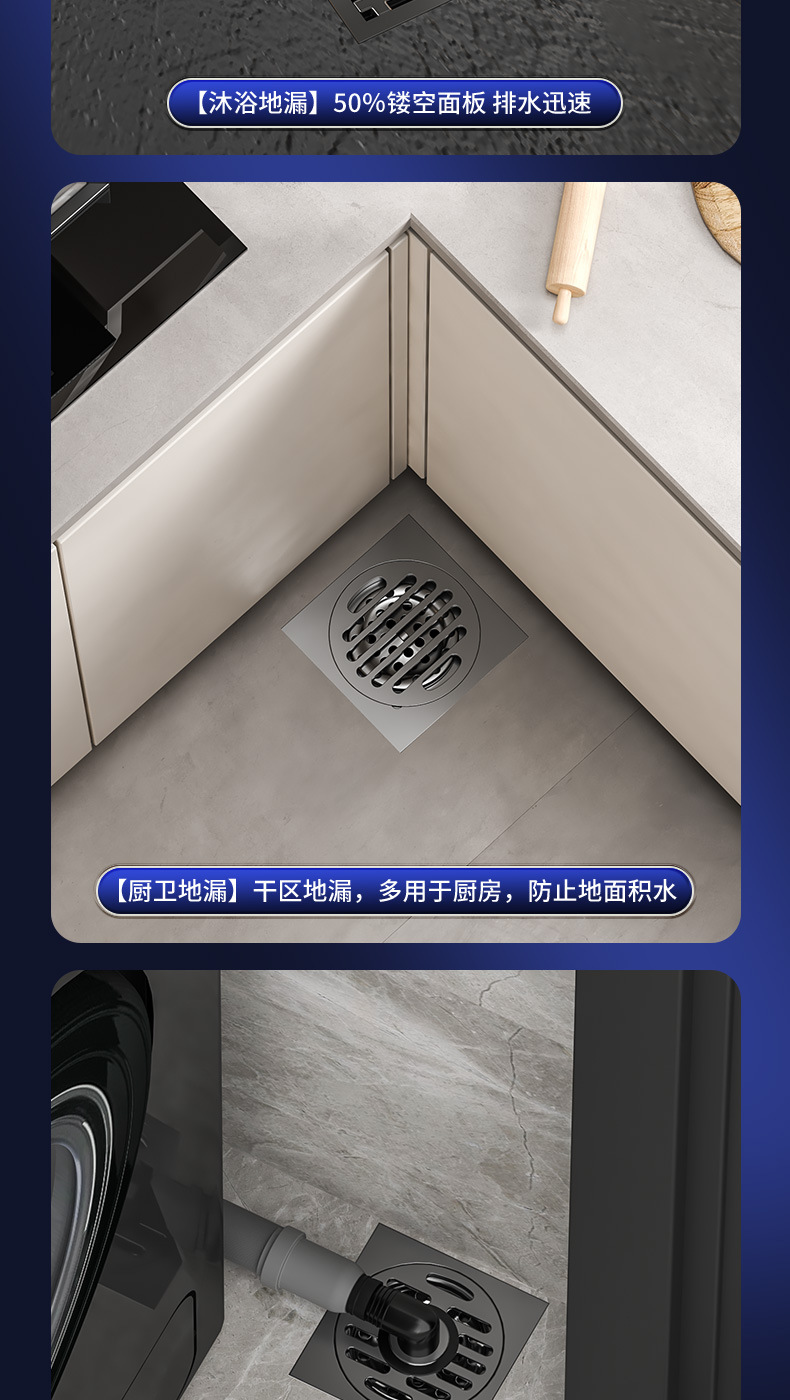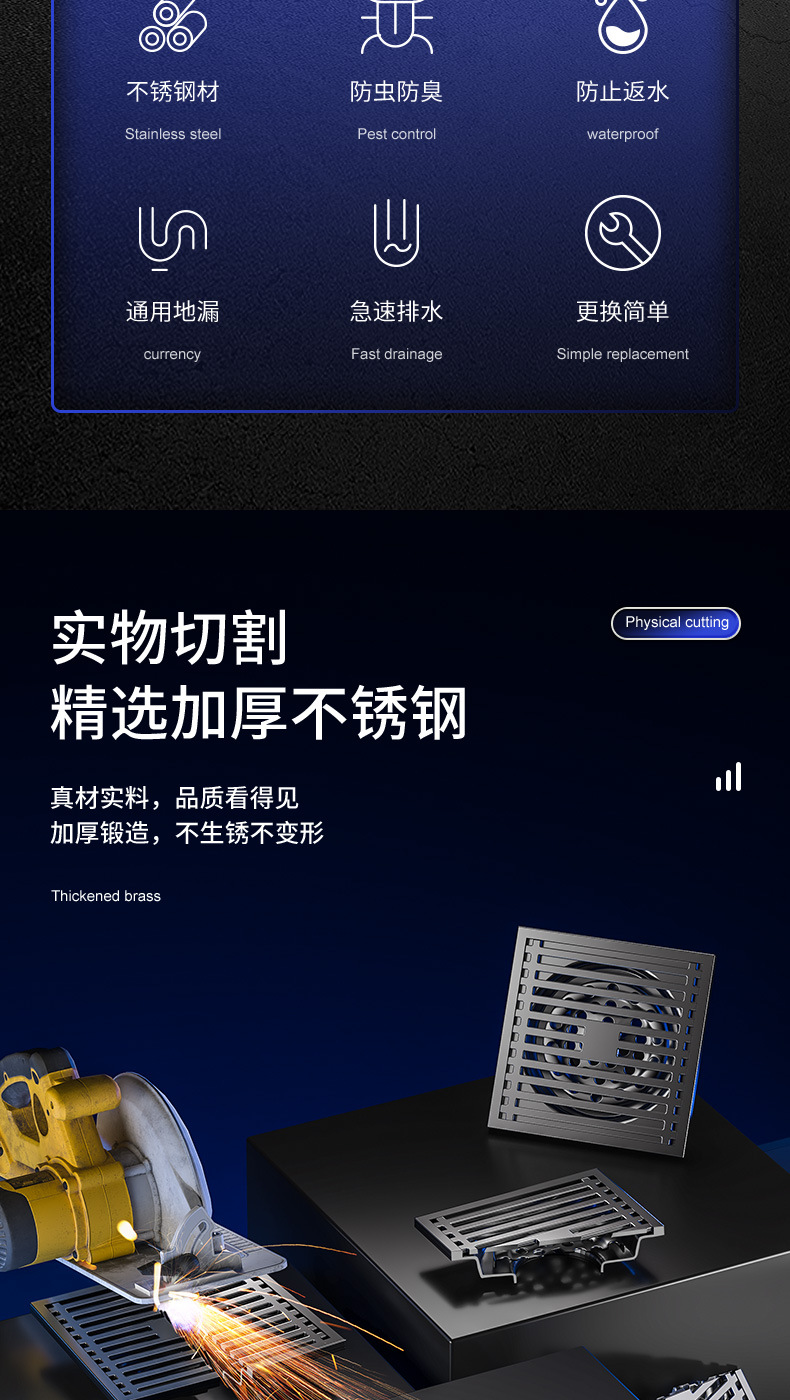 304不锈钢防臭隐形地漏枪灰色全铜地漏芯卫生间淋浴房洗衣机两用
