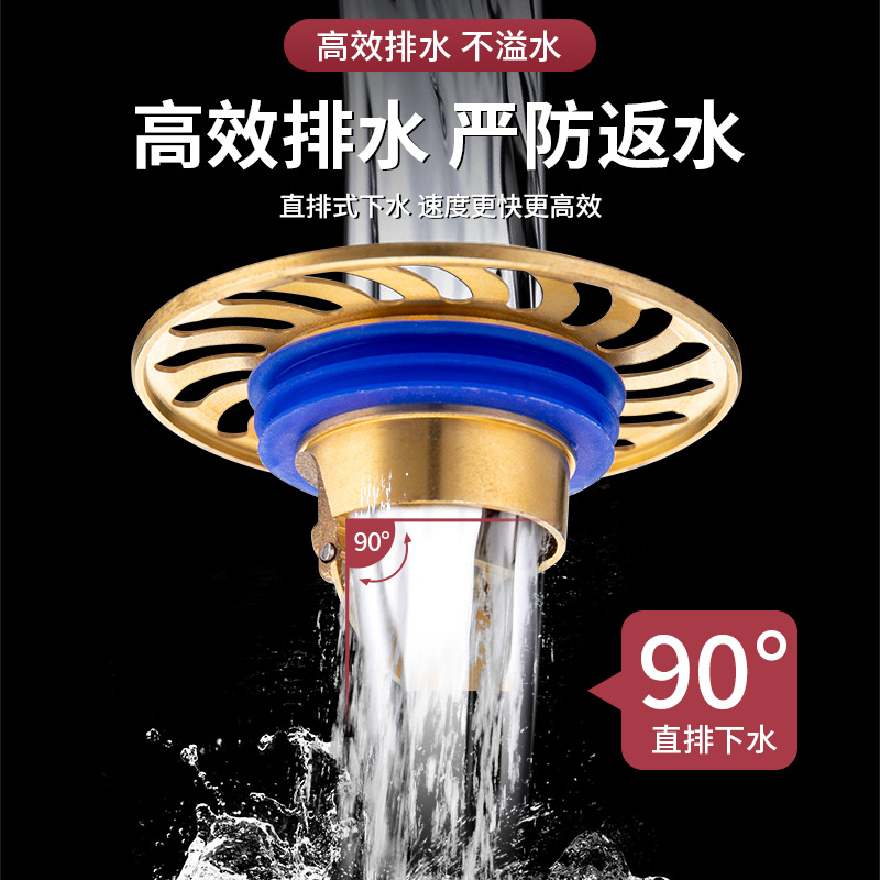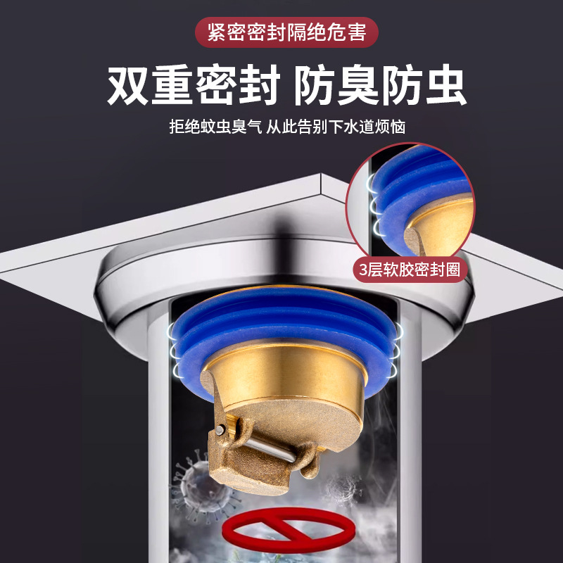 地漏防臭卫生间防返臭神器全铜地漏高效排水下水管道大漏网闭合阀