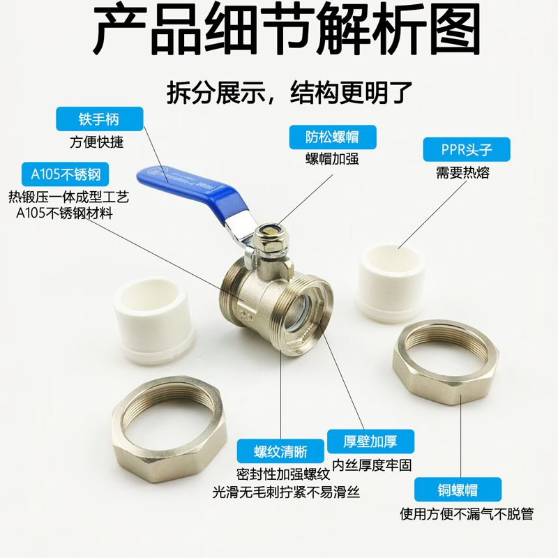 不锈钢20.25.32PPR锻钢双活接球阀耐高压防冻裂热熔型水管开关阀