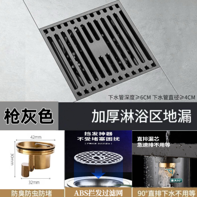 水镀特厚不锈钢地漏防臭防虫卫生间浴室洗衣机下水道方型铜芯地漏