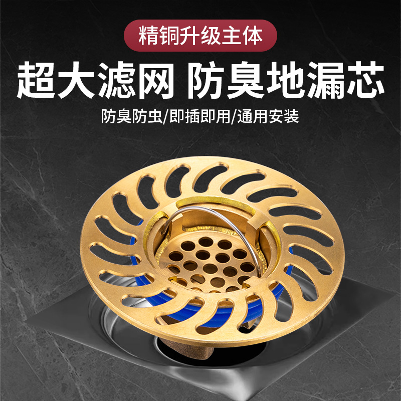 地漏防臭卫生间防返臭神器全铜地漏高效排水下水管道大漏网闭合阀