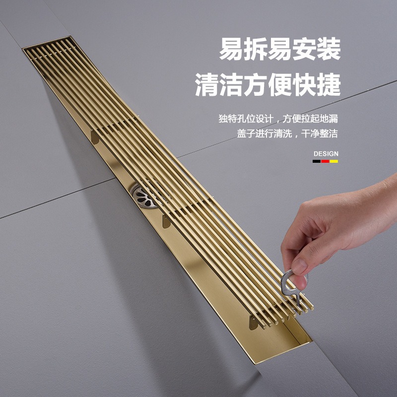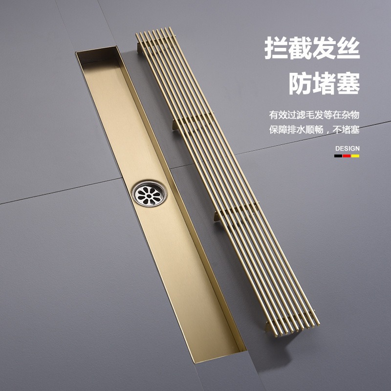 304不锈钢长条地漏竹排淋浴房防臭卫生间长方形金色侧排
