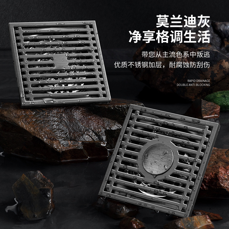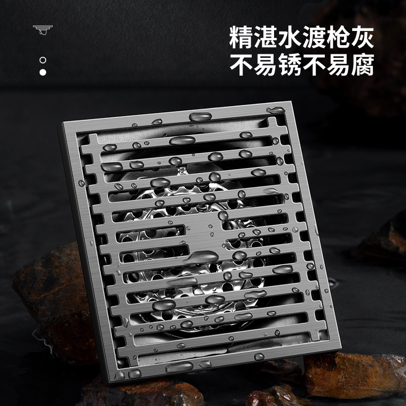 加厚不锈钢地漏竹排枪灰色防臭直排卫生间排水直通芯哑光