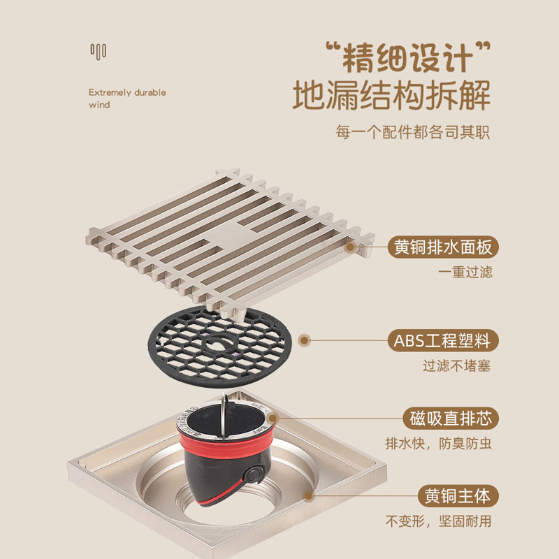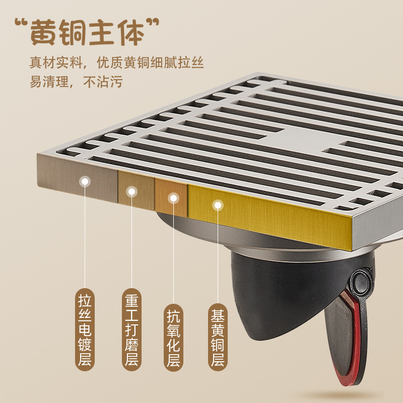 奶油风地漏全铜防臭卫生间长条淋浴镶嵌洗衣地漏盖防虫器