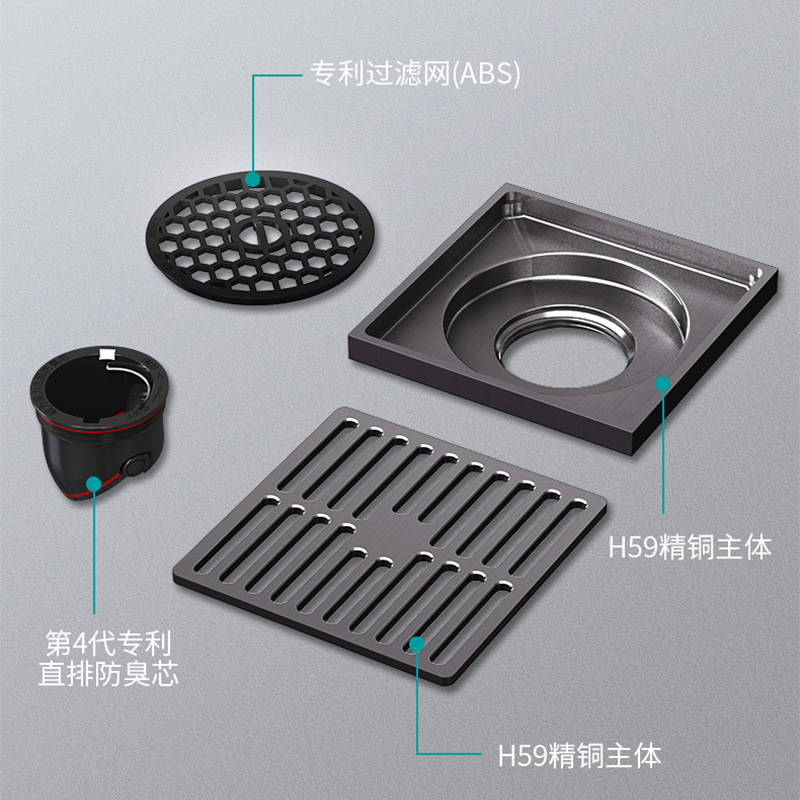 大排量全纯铜地漏直排防臭干湿区淋浴厨房卫生间防返水防堵地漏