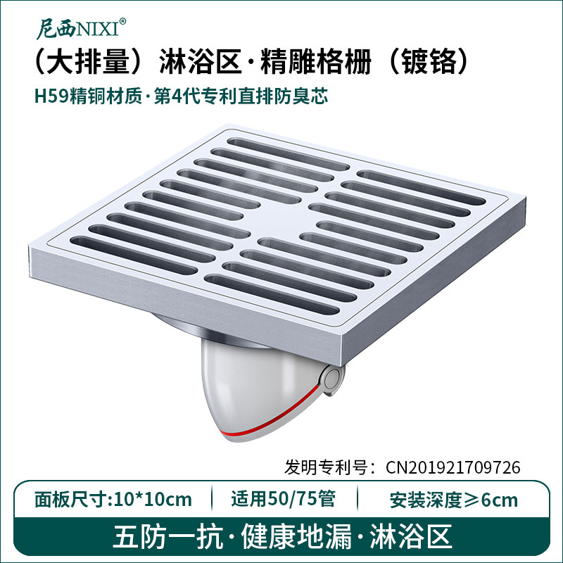 - (淋浴区)精雕格栅(镀铬)50/75管(专利ABS芯)
