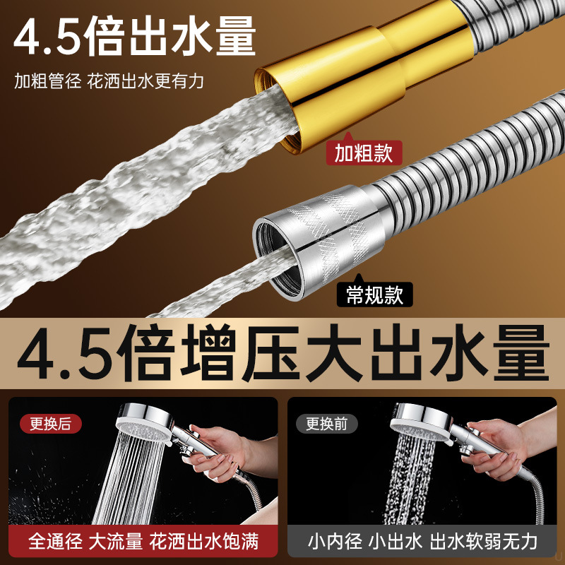 大流量花洒软管喷头浴室洗澡淋浴管水龙头淋雨不锈钢连接水管