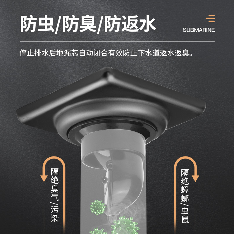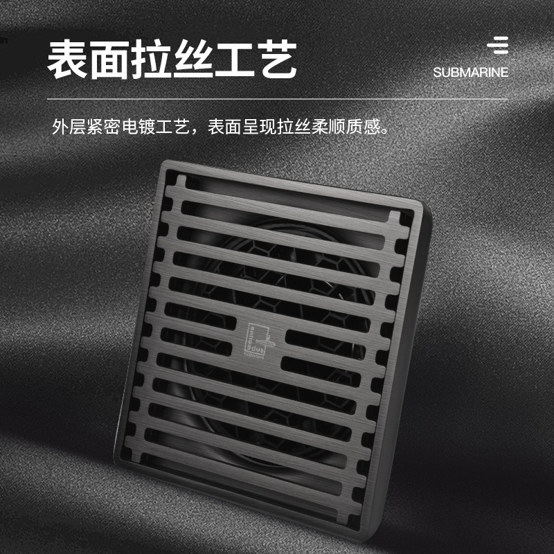 潜水艇枪灰色304不锈钢地漏防臭卫生间洗衣机专两用淋浴房大排量