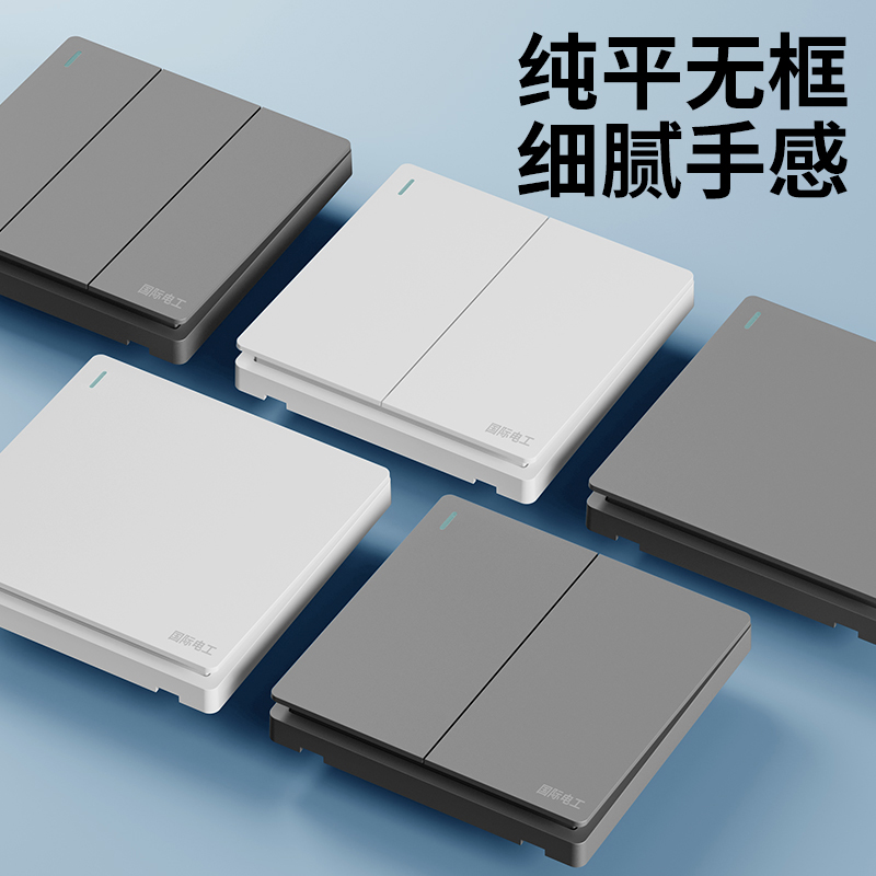 86型暗装大板灰色家用多孔墙壁电源一开五孔开关插座面板