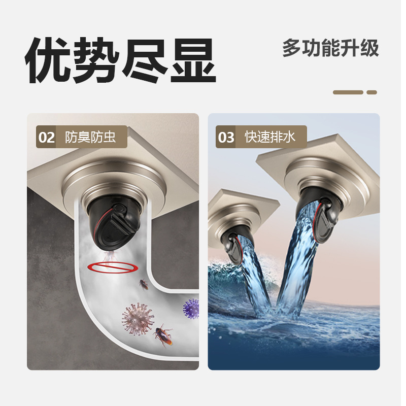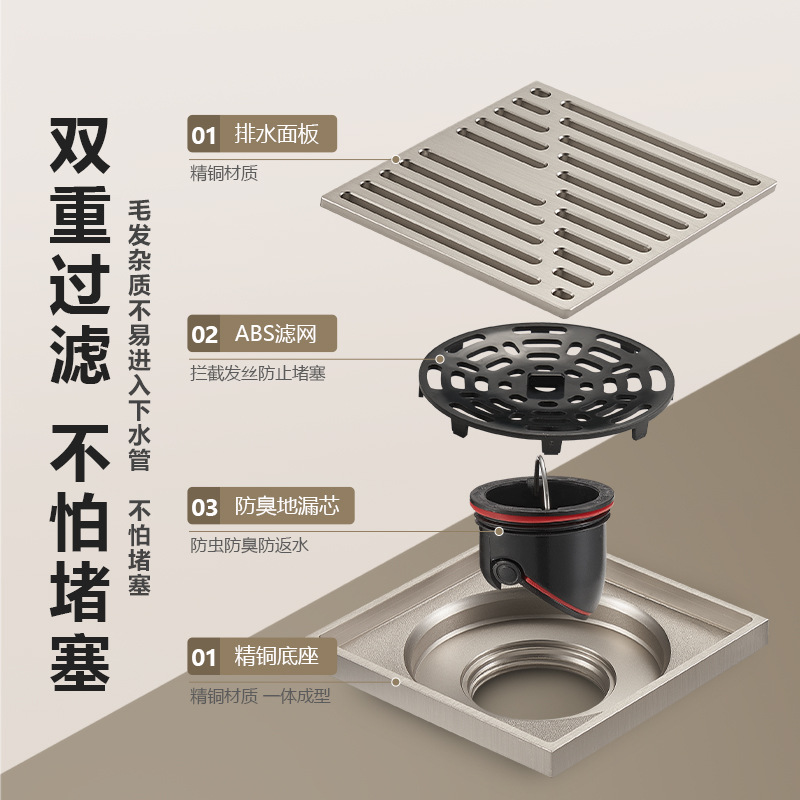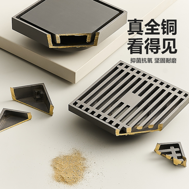 卫生间全铜防臭地漏淋浴房洗衣机防虫防反味奶油色长条隐藏式地漏