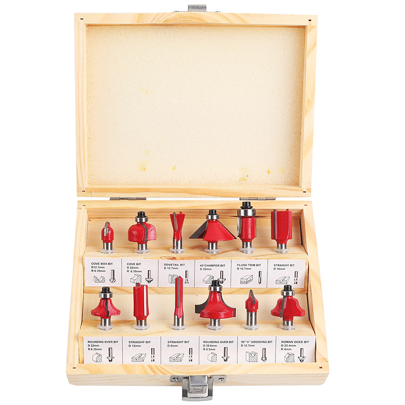 12件15件套铣刀套装修边机雕刻机木工铣刀1/4柄1/2柄硬质合金刀头