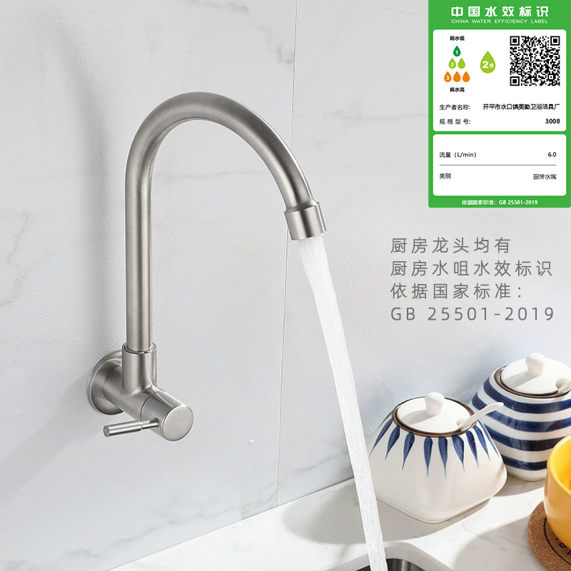 入墙式304不锈钢单冷横式水龙头厨房拖把池阳台洗衣池大弯低管