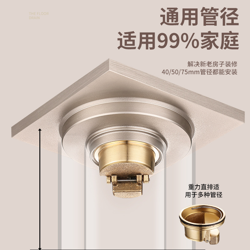 全铜地漏浴室卫生间拉丝防臭地漏全铜重力铜芯地漏卫生间隐形地漏