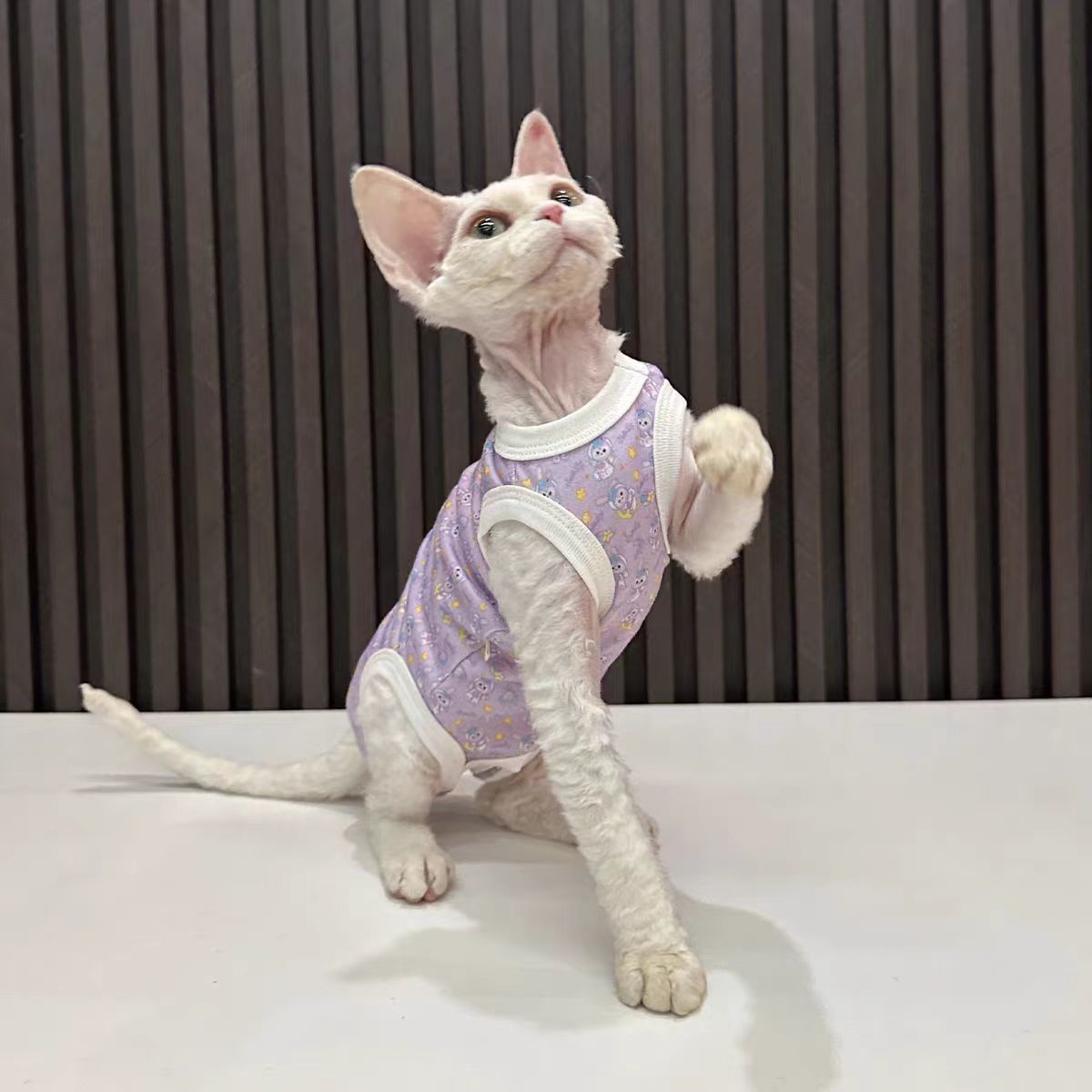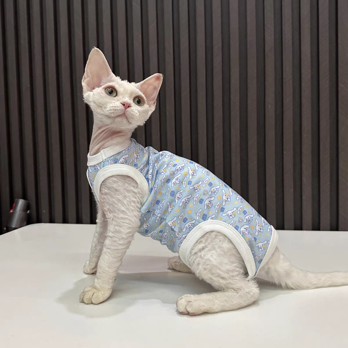 猫咪衣服夏季防掉毛四脚衣德文无袖四脚衣德文猫衣服春秋款