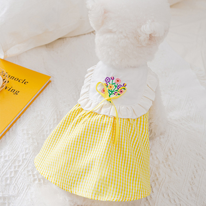 春夏季清新格纹公主连衣裙泰迪比熊中小型犬幼犬薄款裙子宠物衣服
