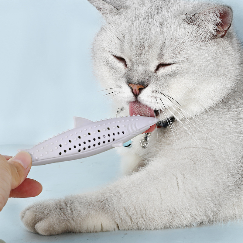 亚马逊猫咪啃咬鲨鱼逗猫棒薄荷洁齿磨牙棒硅胶鱼玩具抖音同款