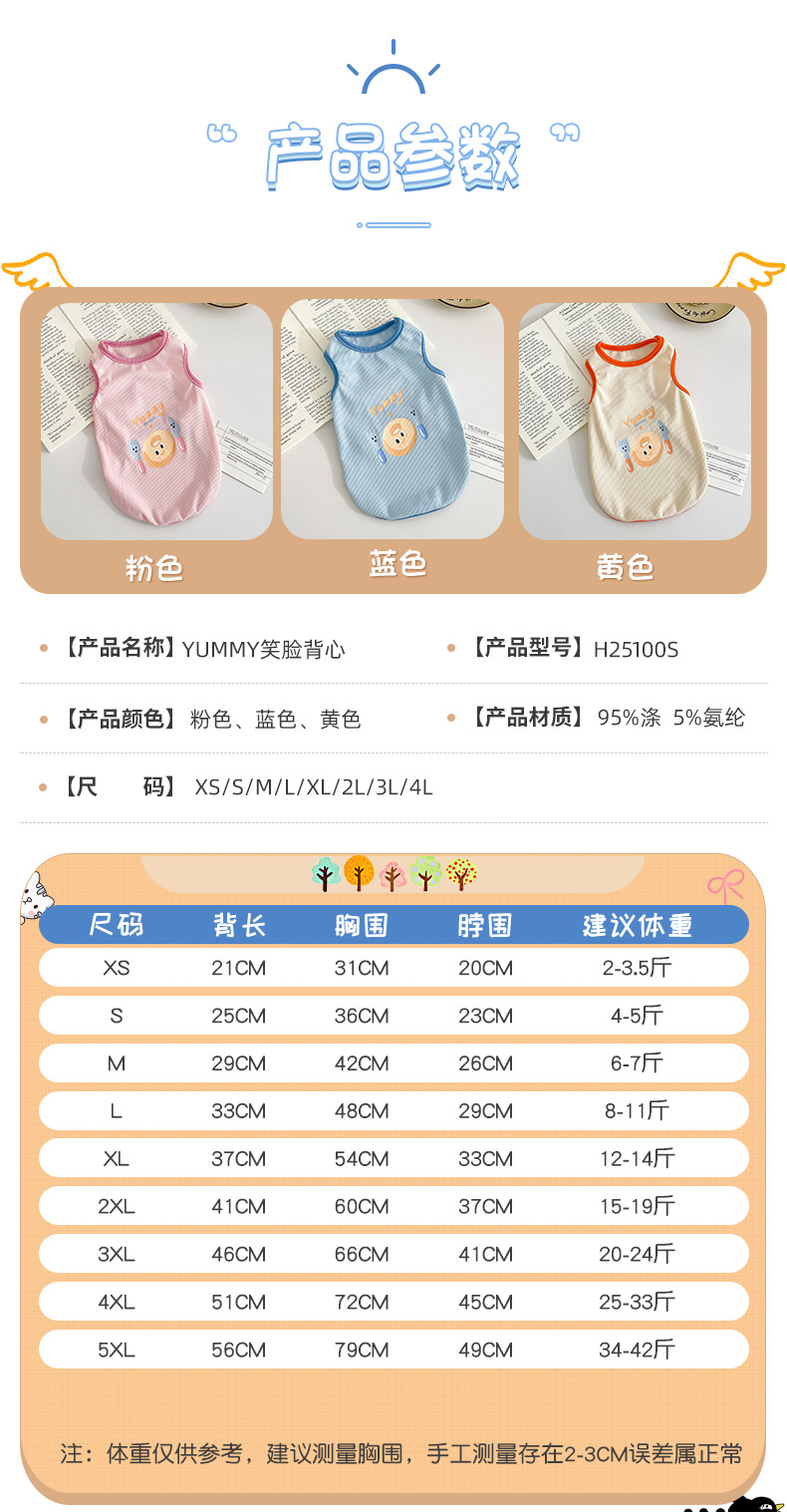25年春秋新款狗狗衣服笑脸背心中大型犬柴犬柯基居家室外狗衣服