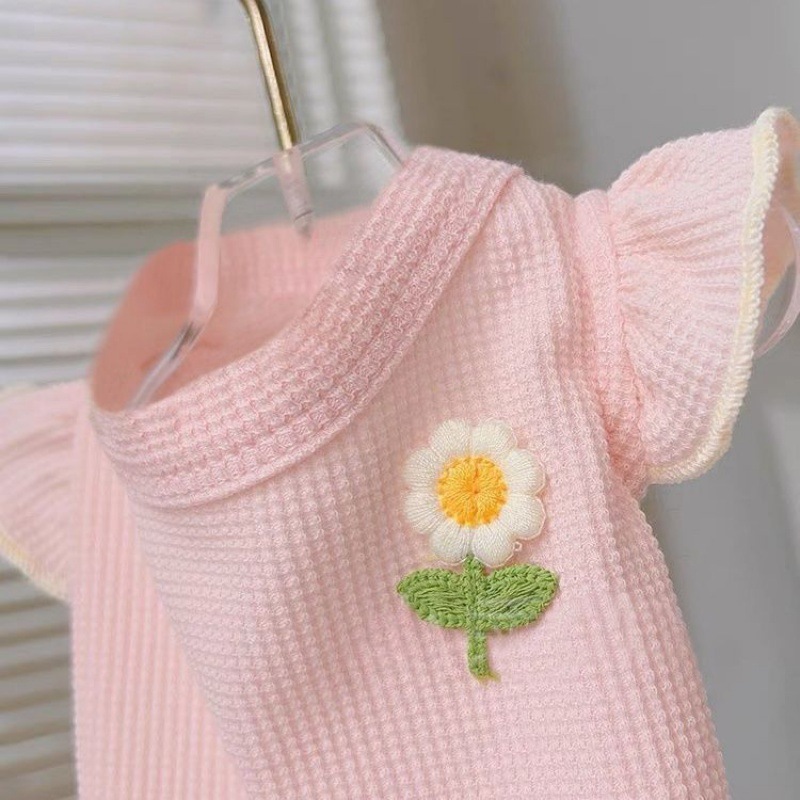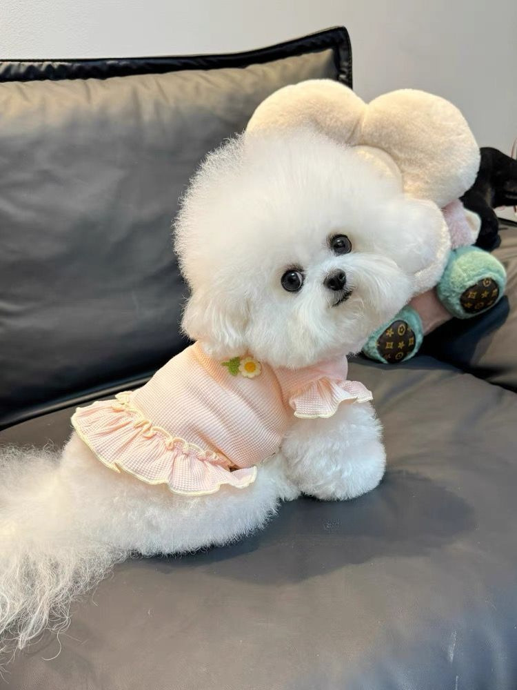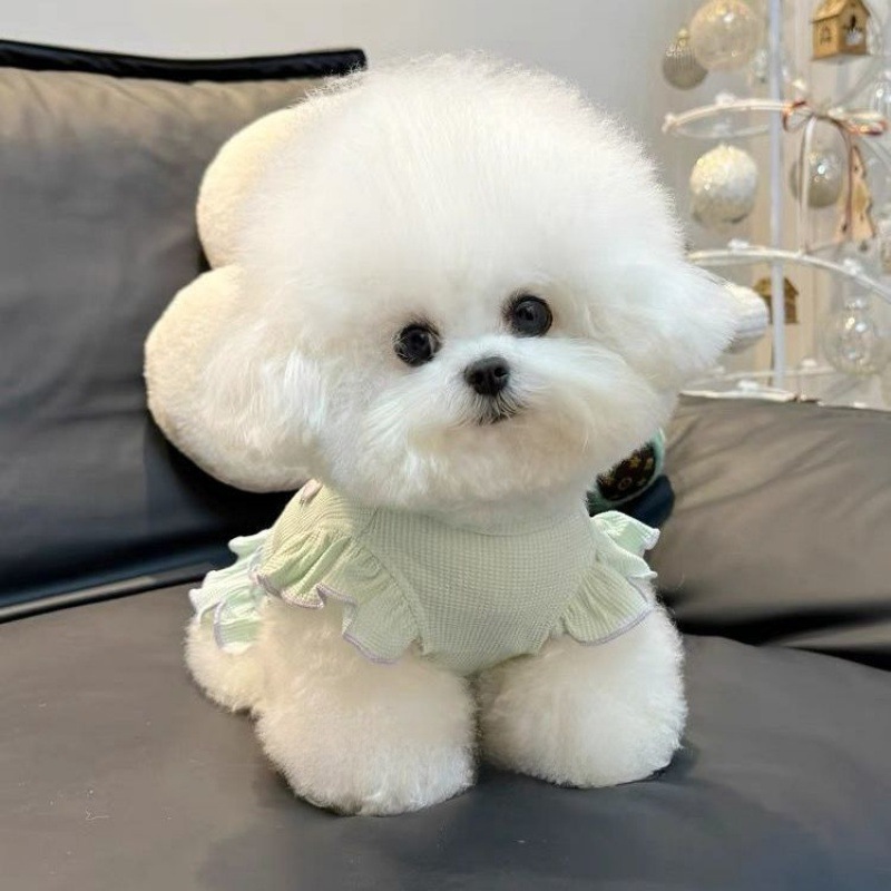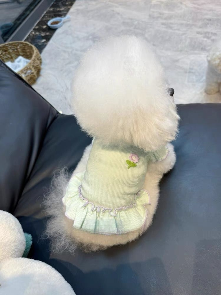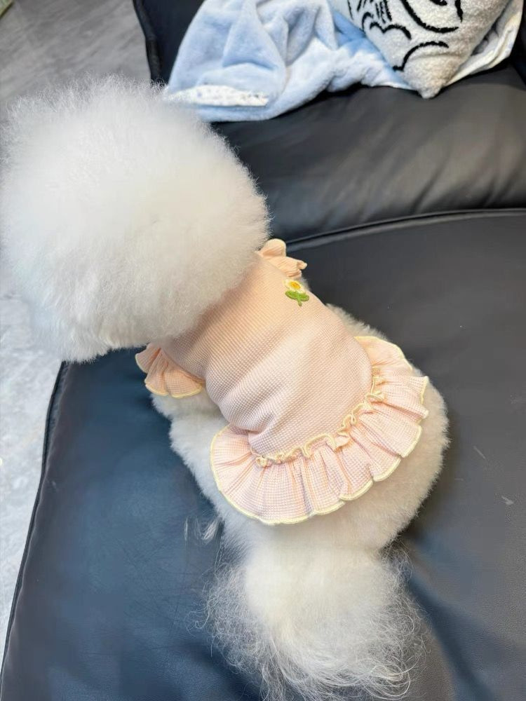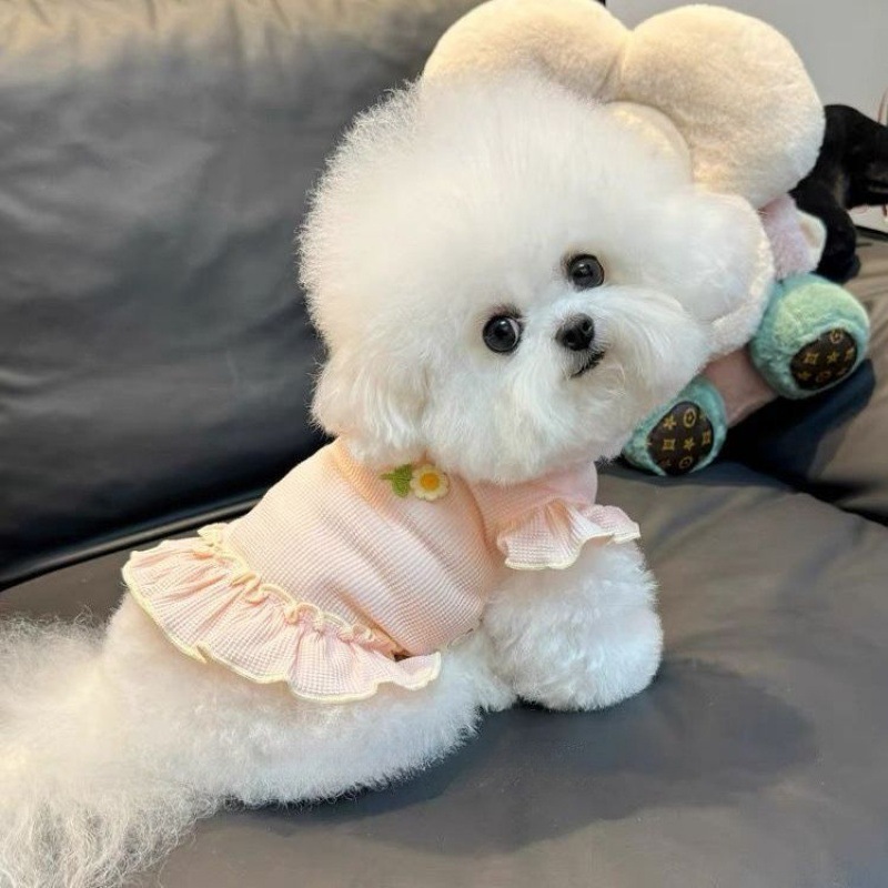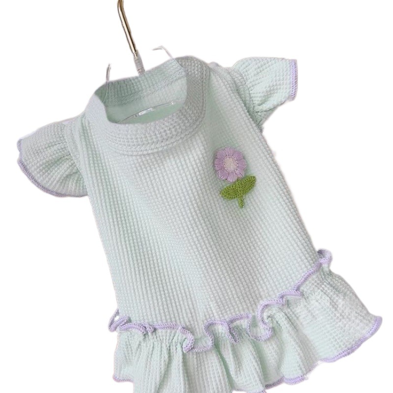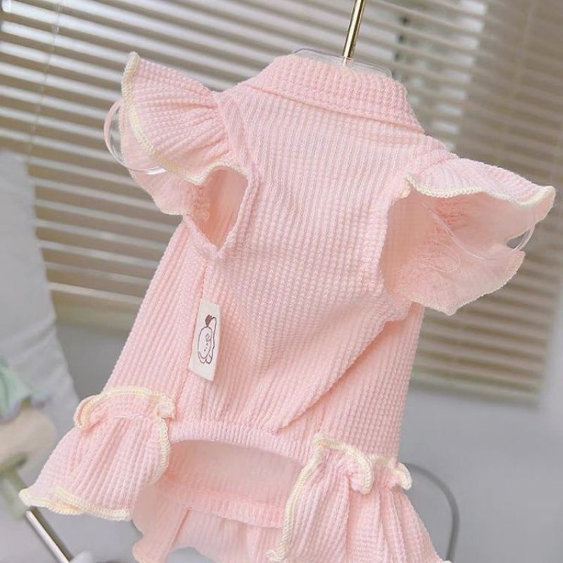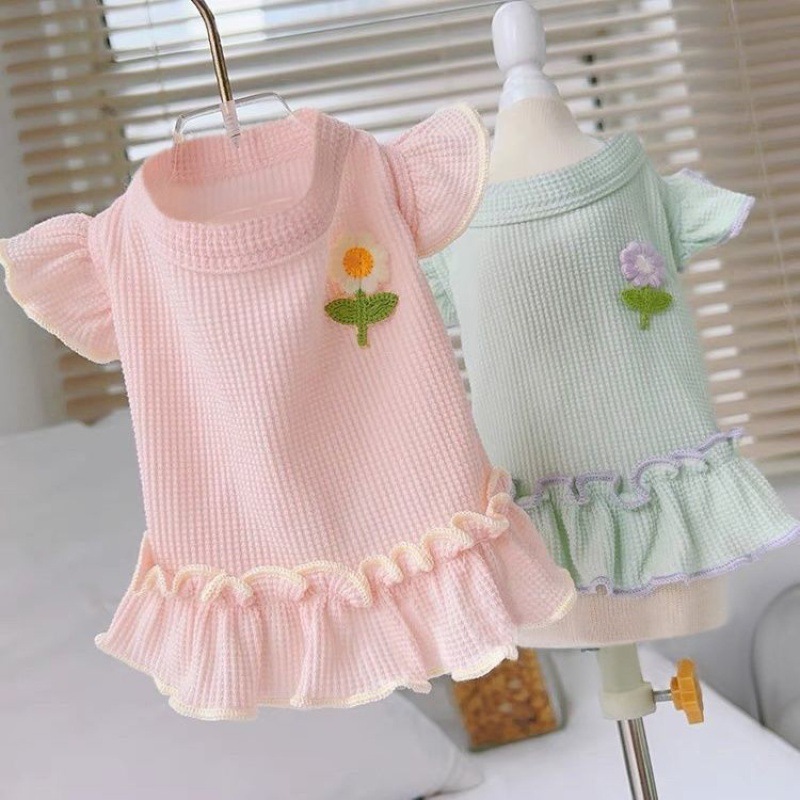 宠物猫咪泰迪可爱透气服比熊狗狗衣服春夏新款华夫格小花飞袖裙子
