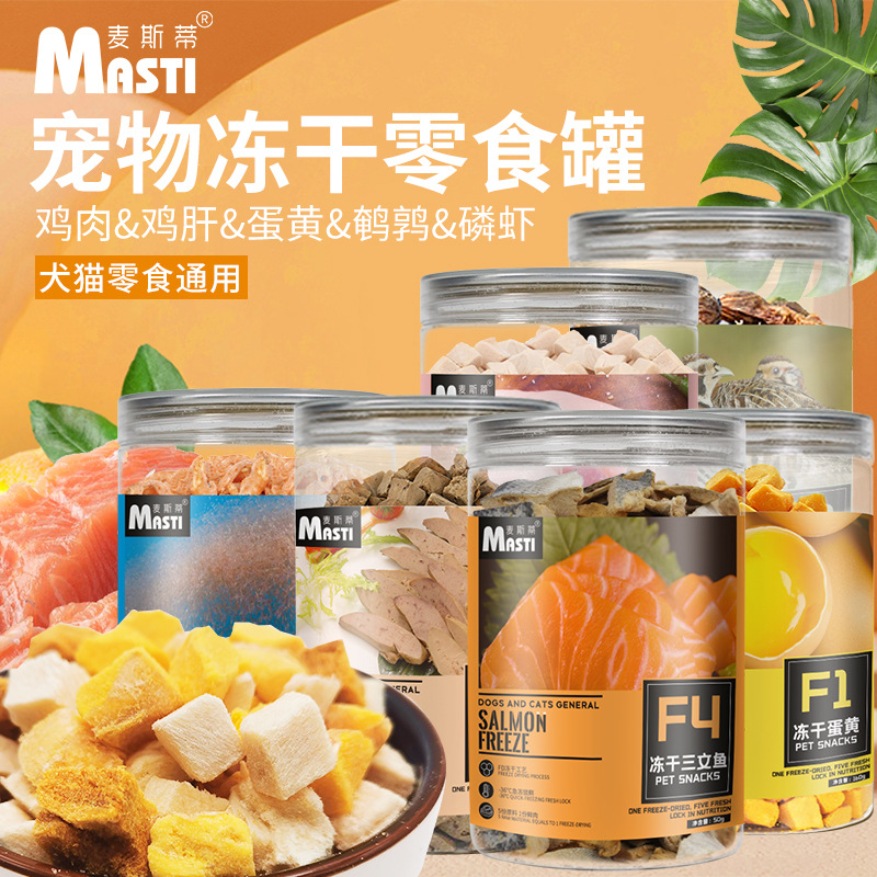 猫零食麦斯蒂鸡肉宠物冻干零食三文鱼蛋黄狗零食猫冻干