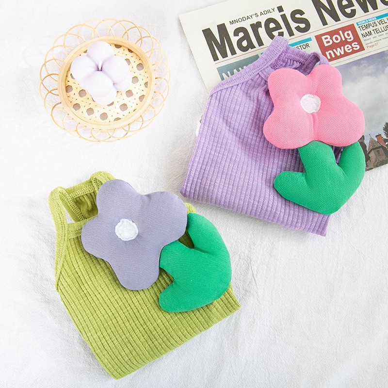 新品春夏季泫雅风狗狗花朵背心猫咪吊带宠物衣服小型犬幼犬吊带衫