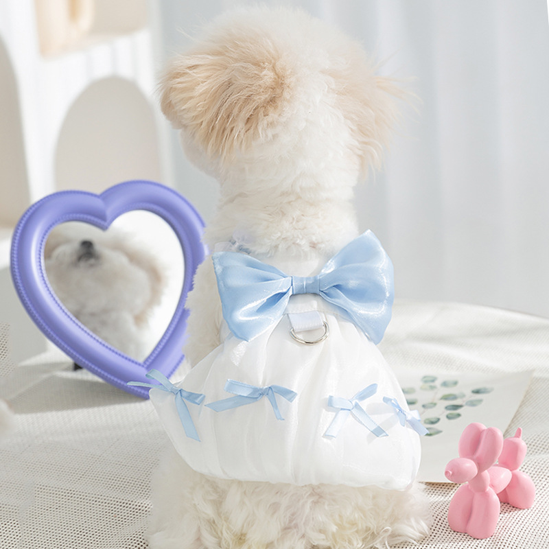透气网纱蝴蝶结吊带裙小狗狗裙子春夏天猫公主裙泰迪比熊宠物衣服