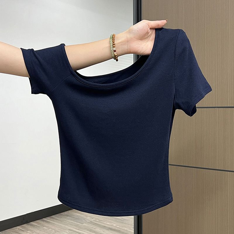 藏青色短袖美式复古高级感T恤女夏凡尔赛奶呼呼上衣洋气小衫漂亮