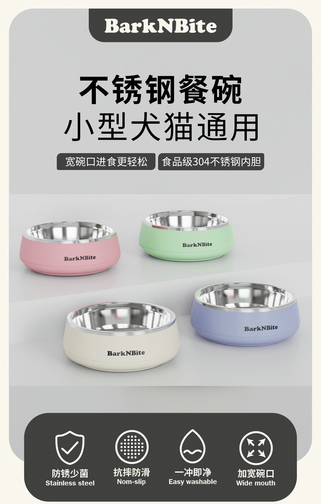 猫碗304不锈钢猫盆BarkNBite中小型猫狗慢食碗宠物喝水具