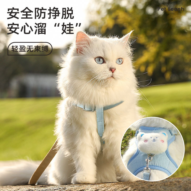 猫咪牵引绳防挣脱外出溜猫背心式胸背带小型犬狗狗防跑遛猫绳