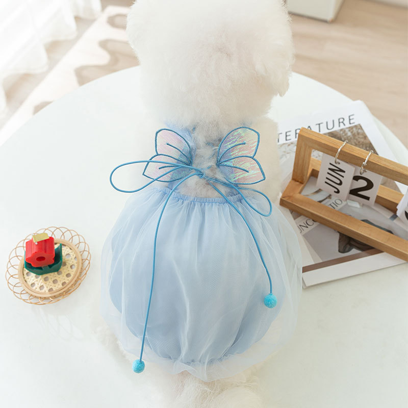 夏季新款幻彩蝴蝶吊带裙泰迪比熊中小型犬连衣裙猫咪裙子宠物衣服