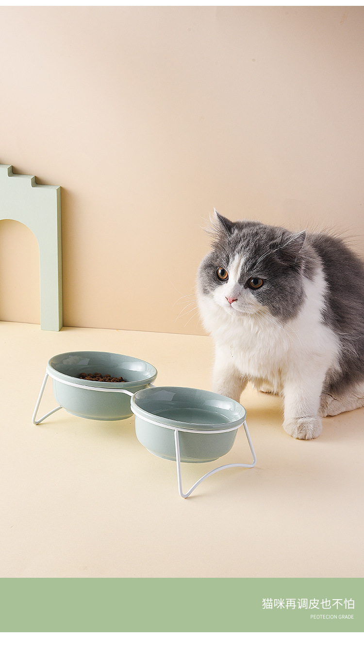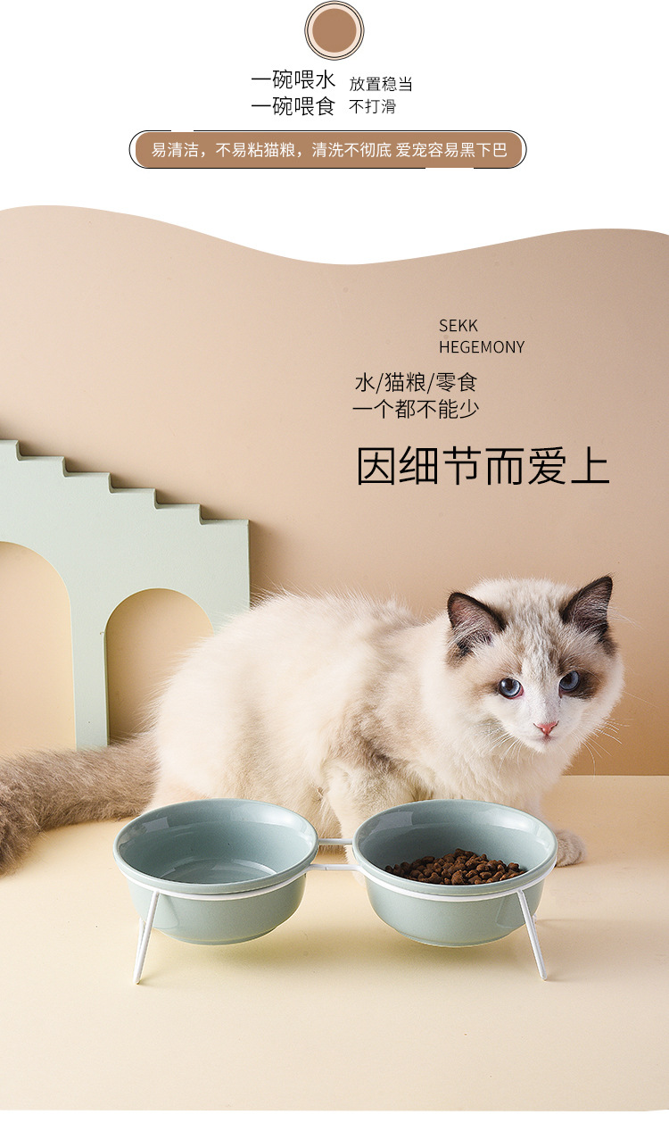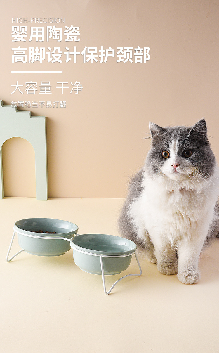 猫碗陶瓷狗狗碗食盆双碗食碗保护颈椎饭碗猫咪喝水碗饭盆宠物用品