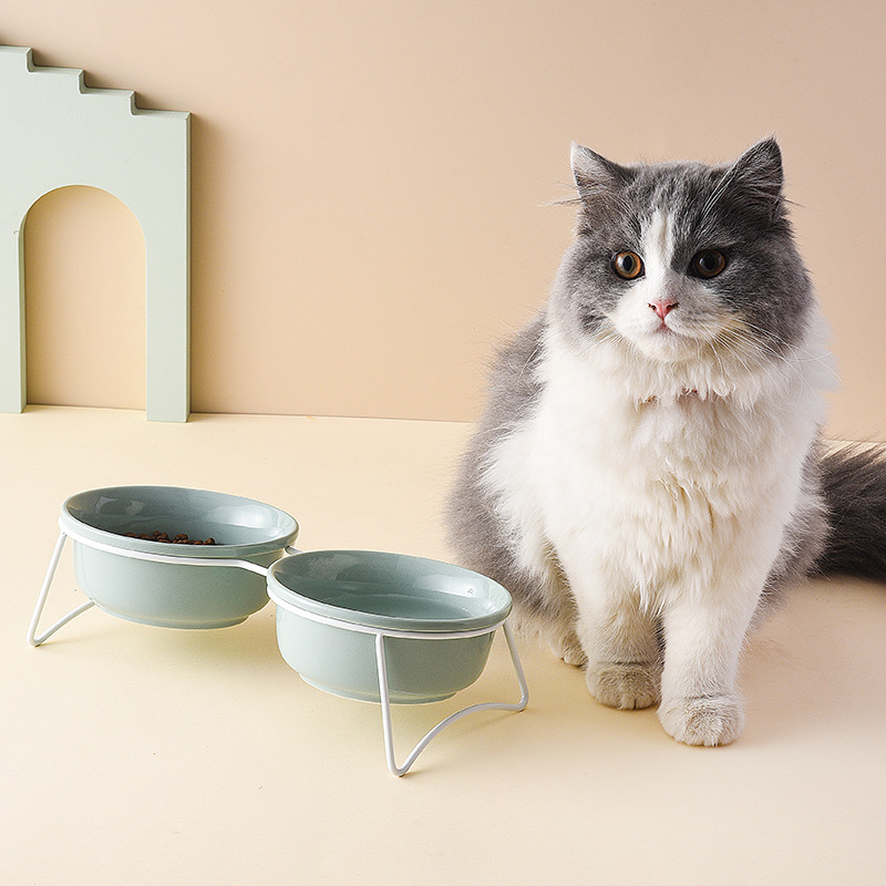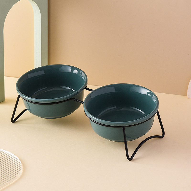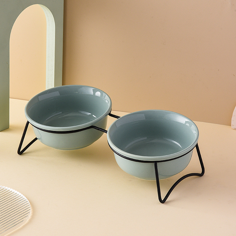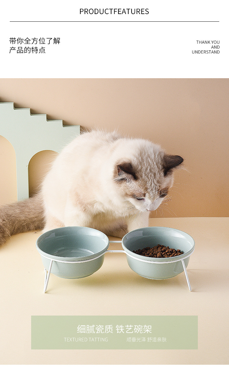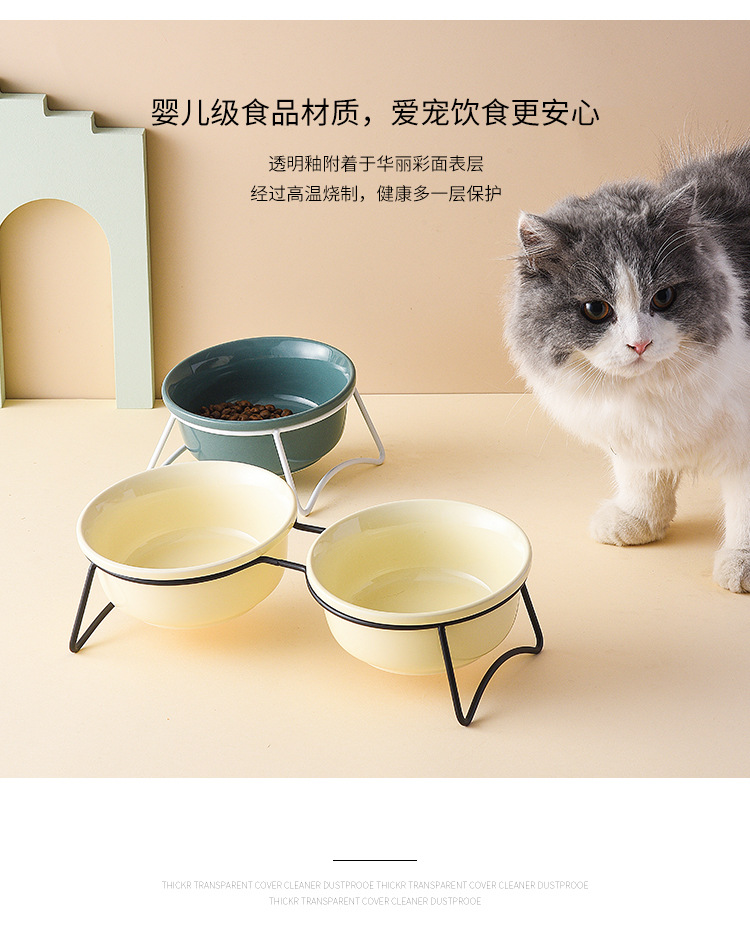 猫碗陶瓷狗狗碗食盆双碗食碗保护颈椎饭碗猫咪喝水碗饭盆宠物用品