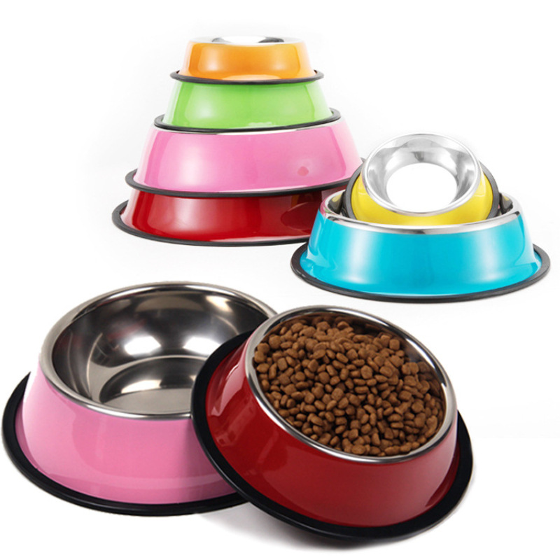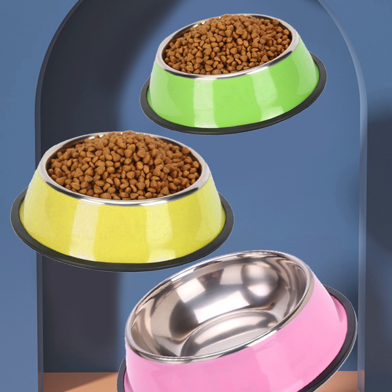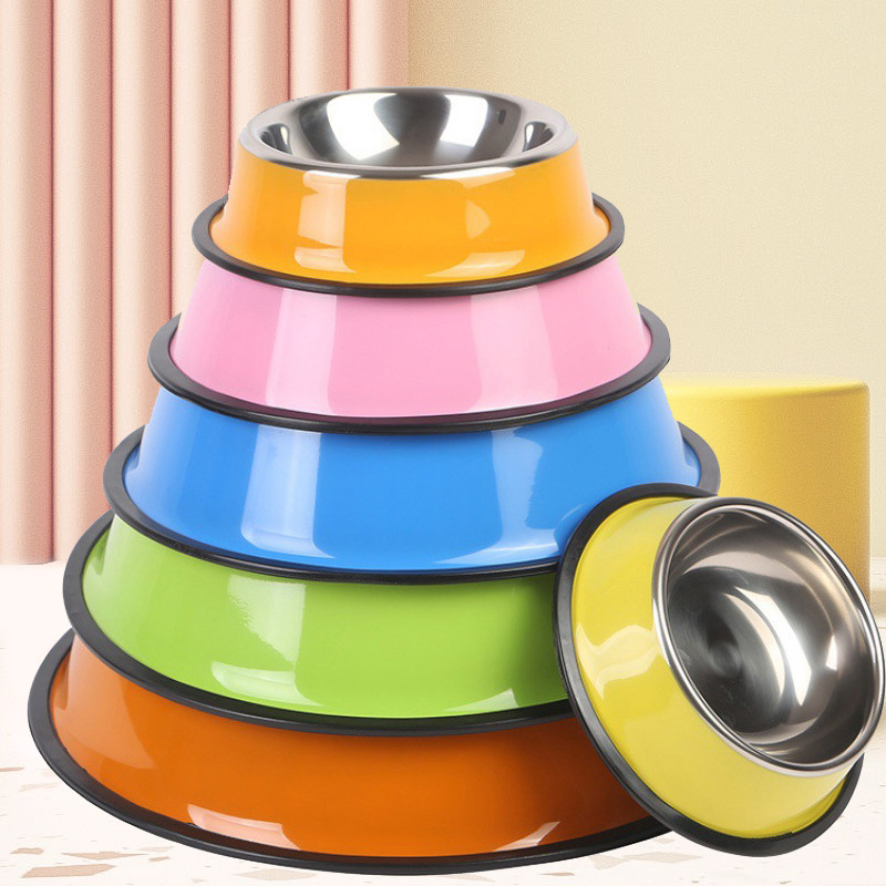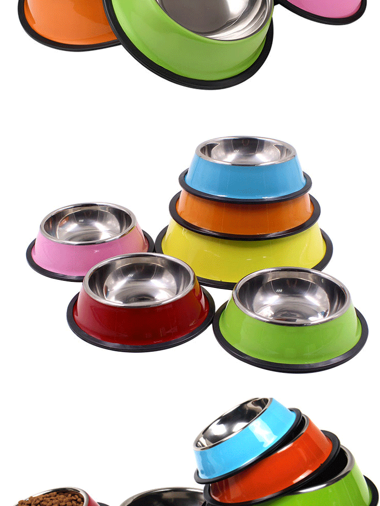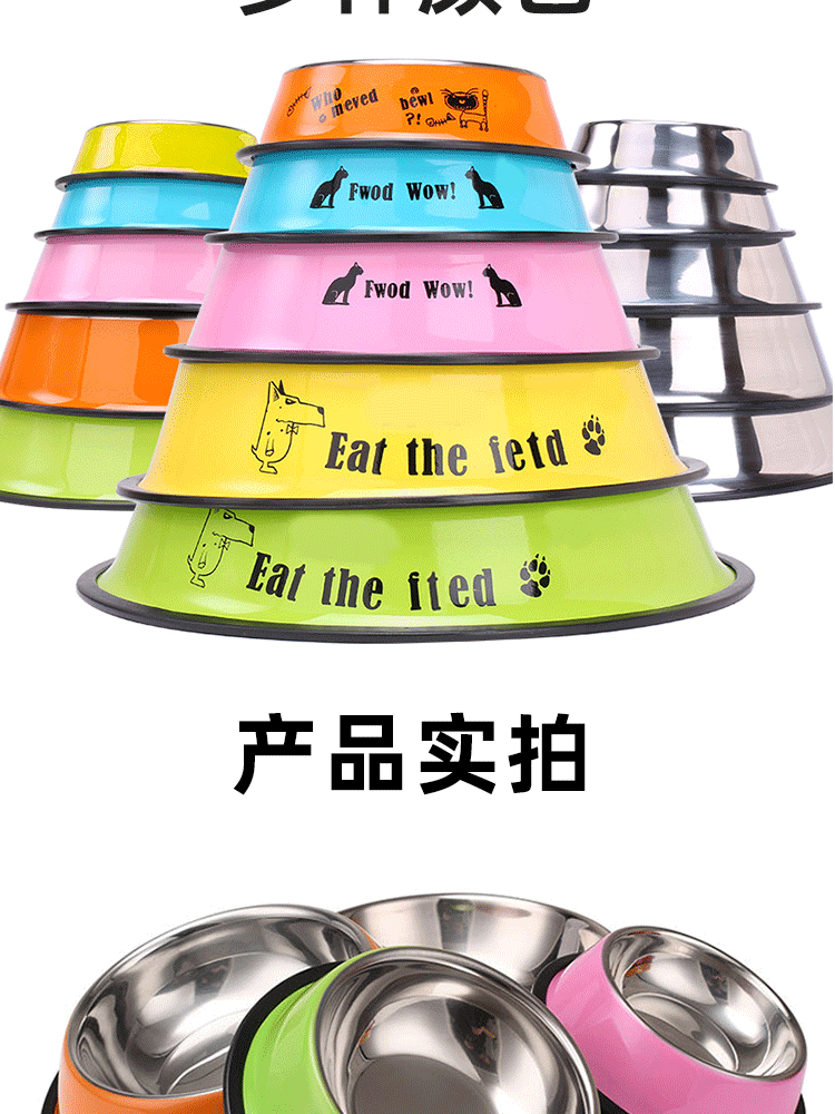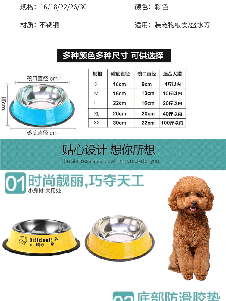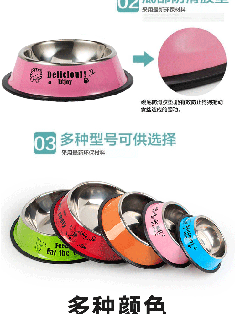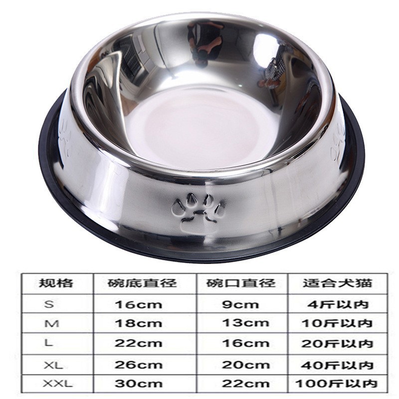 不锈钢狗碗耐摔猫碗防滑脚印宠物食盆多尺寸宠物碗
