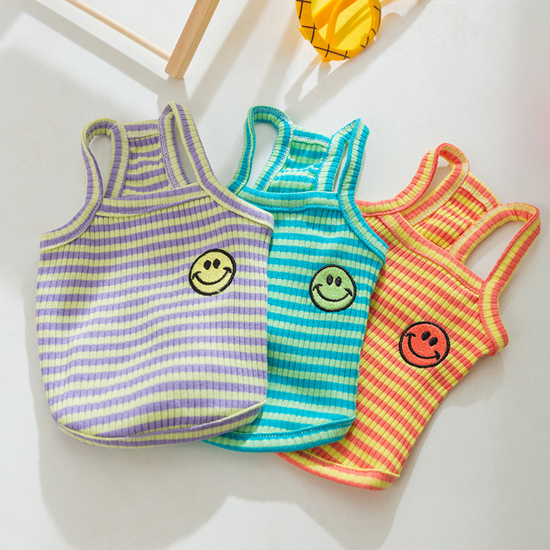 彩色多彩条纹吊带小狗狗春夏季服装透气泰迪比熊斗牛通用宠物服饰