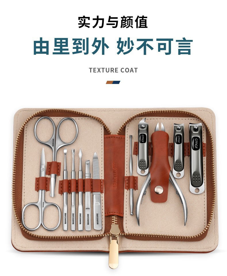 棕咖色指甲刀12件套
