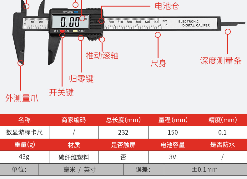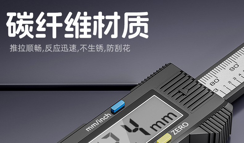小型高精度工业级电子数显游标卡尺家用校准块碳纤维游标卡尺