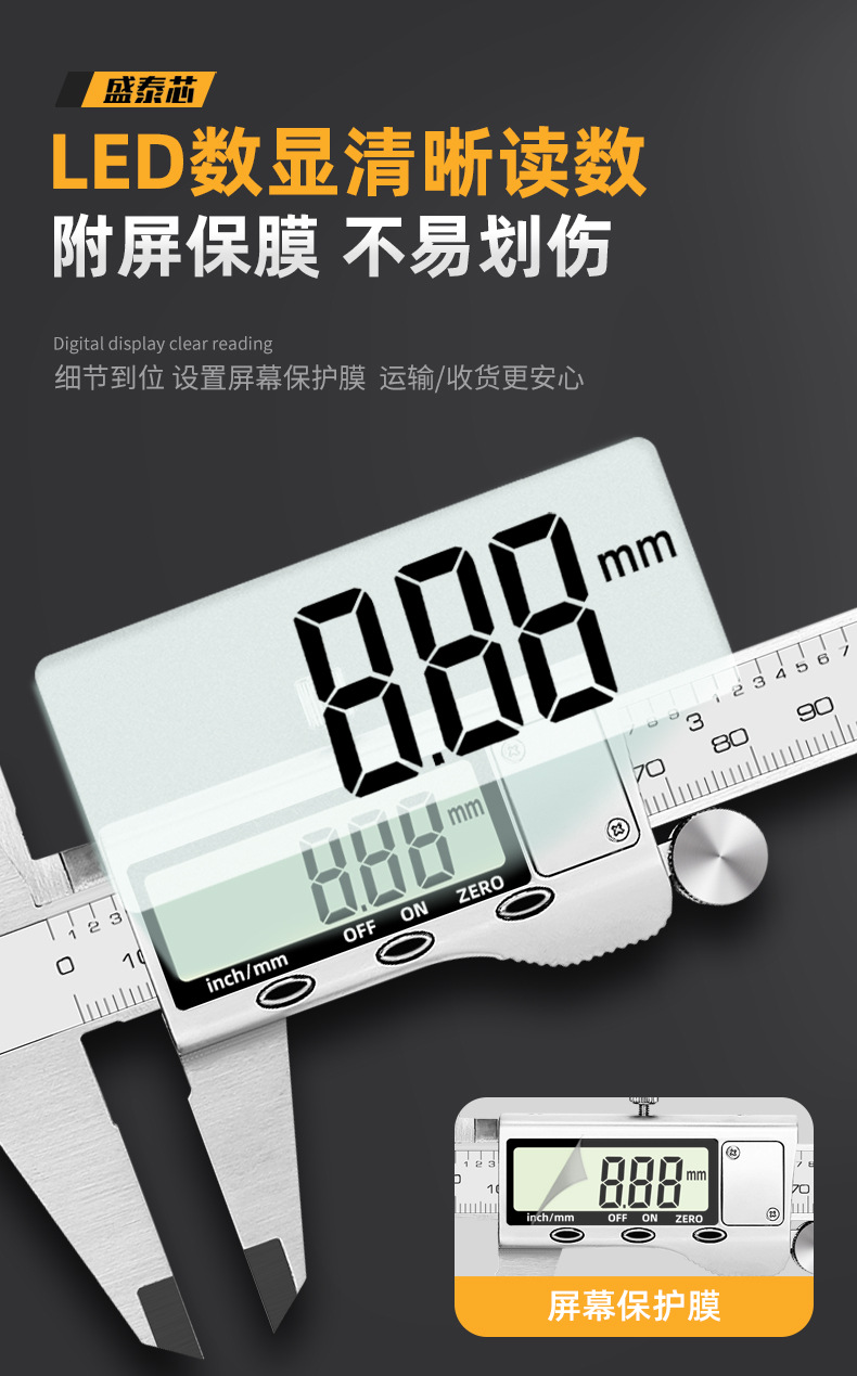 数显大屏不锈钢卡尺200mm【ABS数显壳】
