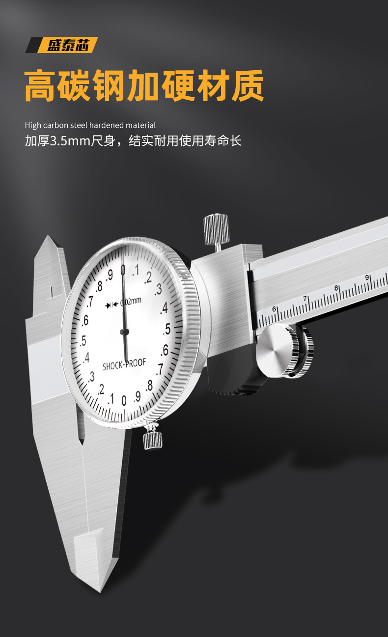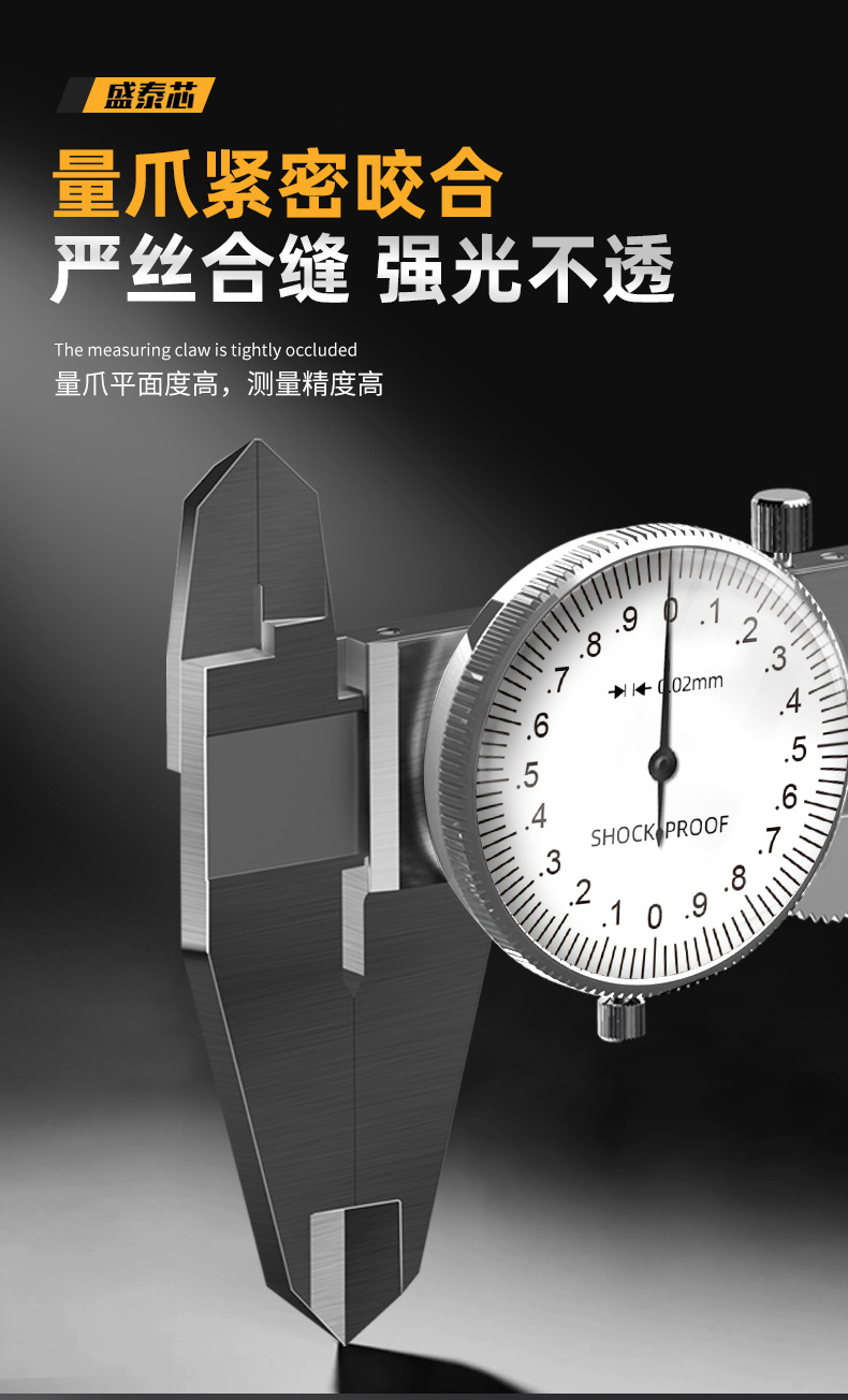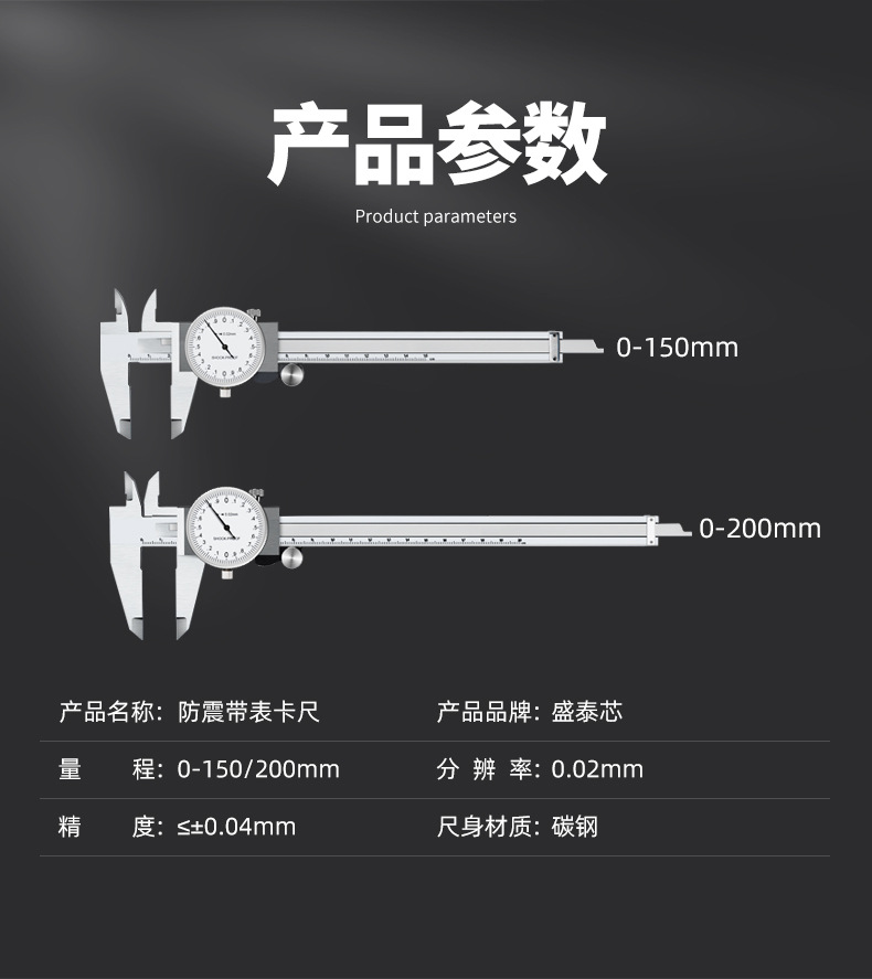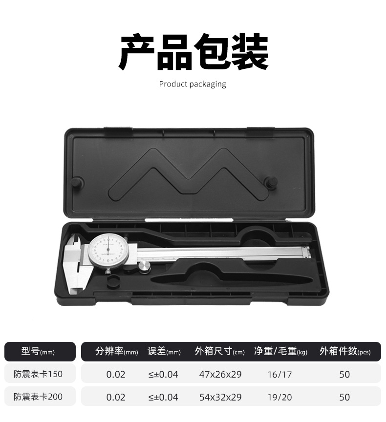 带表卡尺0-150-200mm全金属高精度单向防震油标卡尺