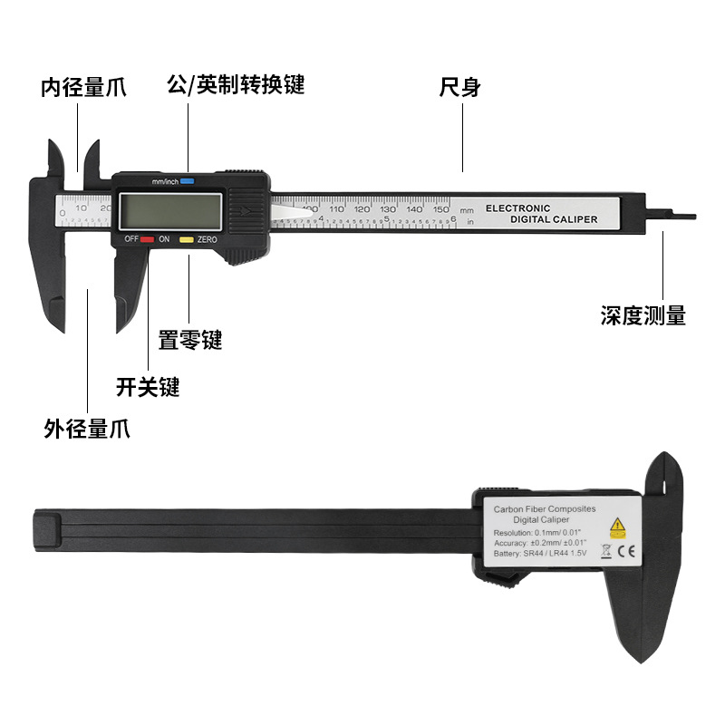 塑料电子数显游标卡尺0-150mm珠宝文玩内外径卡尺碳纤维数字大屏