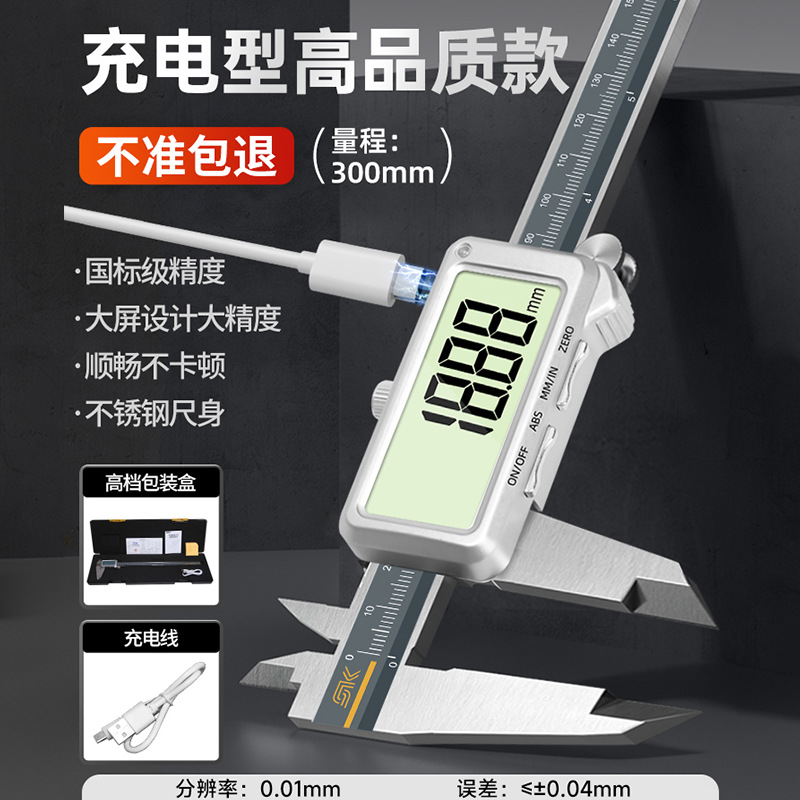 高品质卡尺300mm【玻璃棚更准:充电型type-C接口】