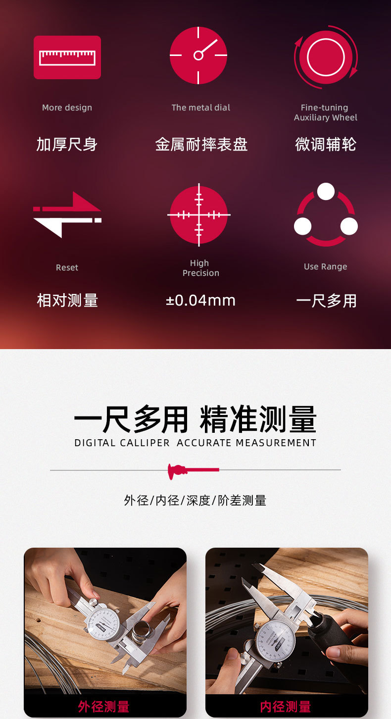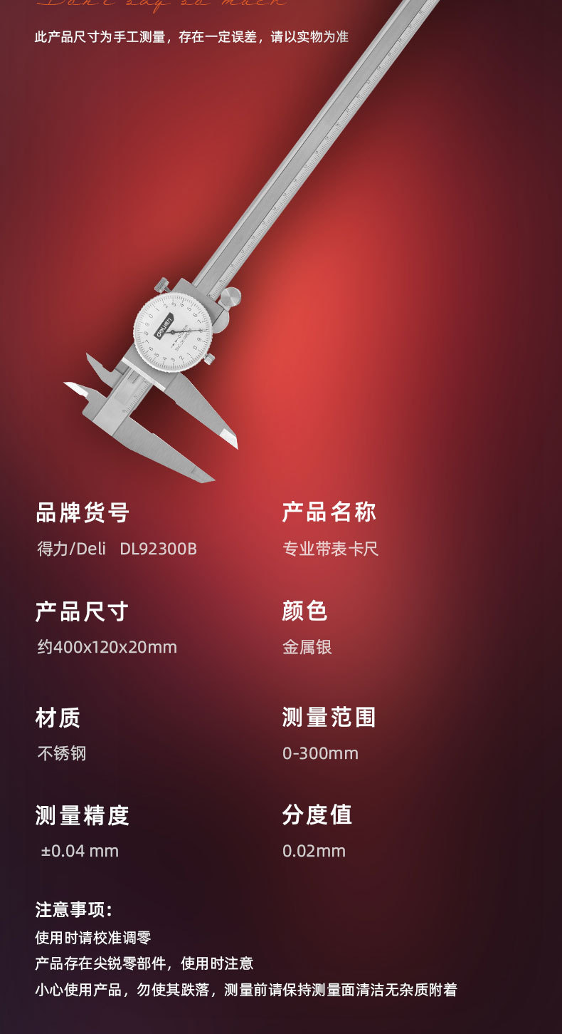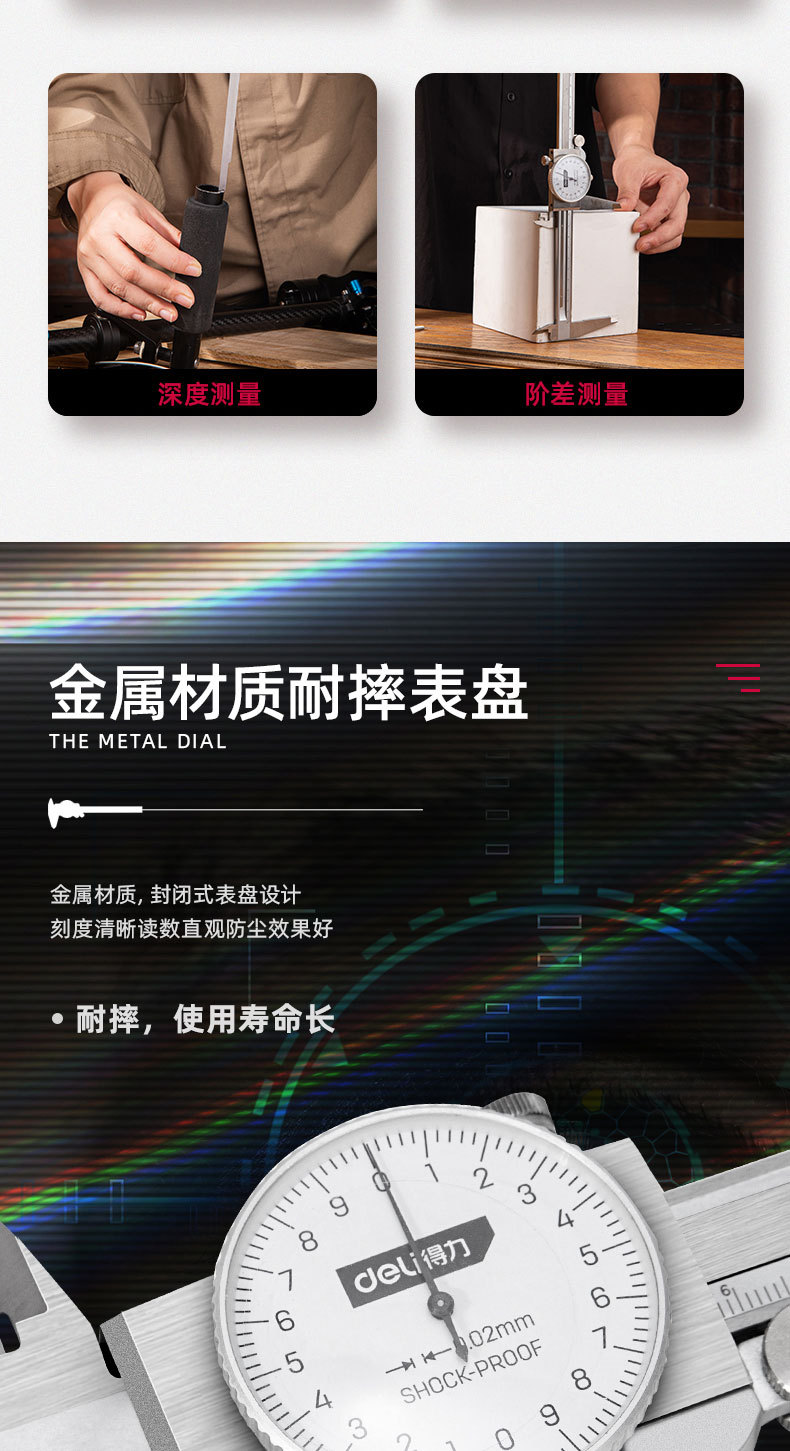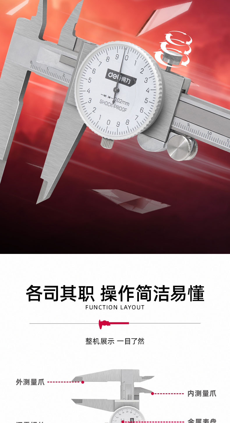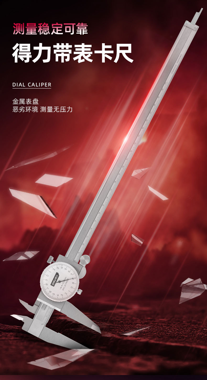 得力工具不锈钢表盘式游标卡尺内径外径卡尺DL92150B200B300B