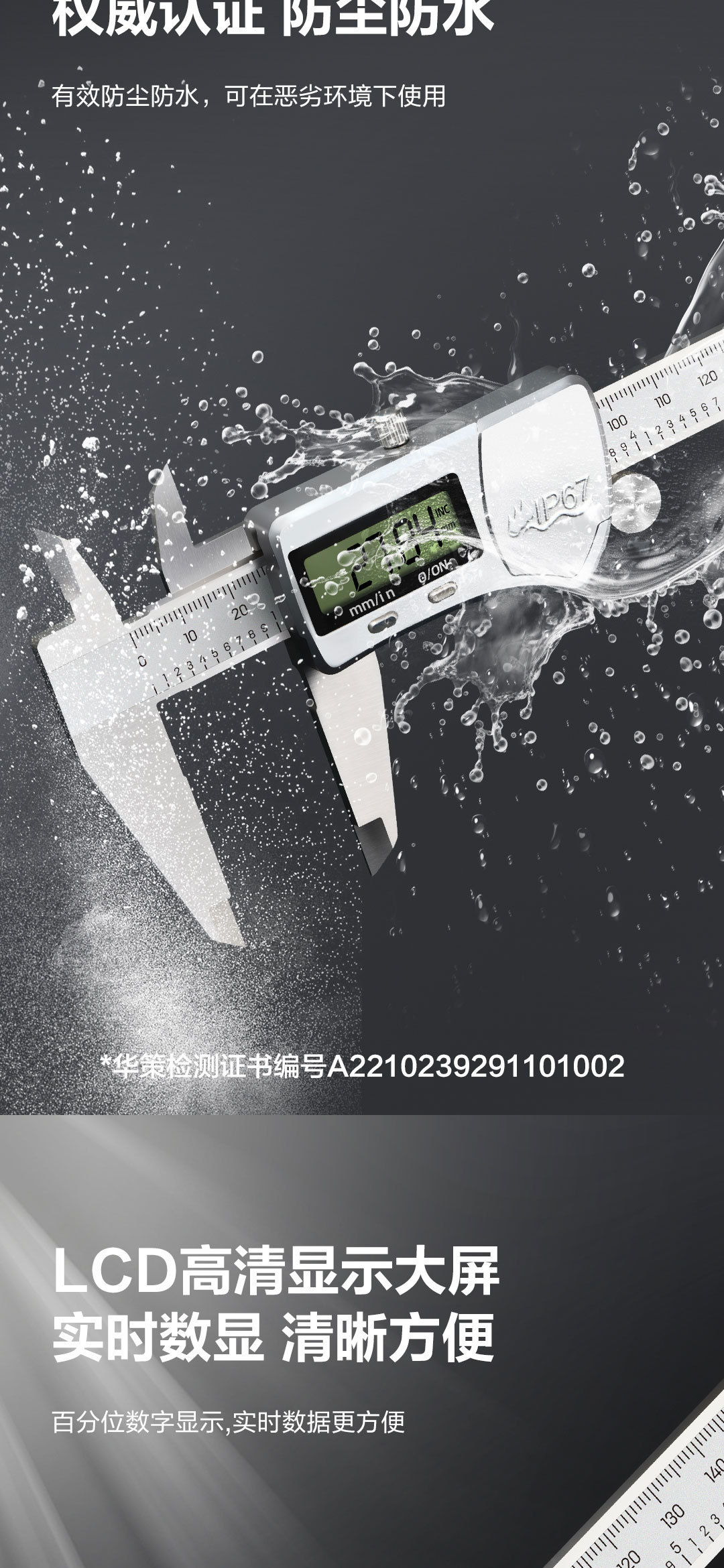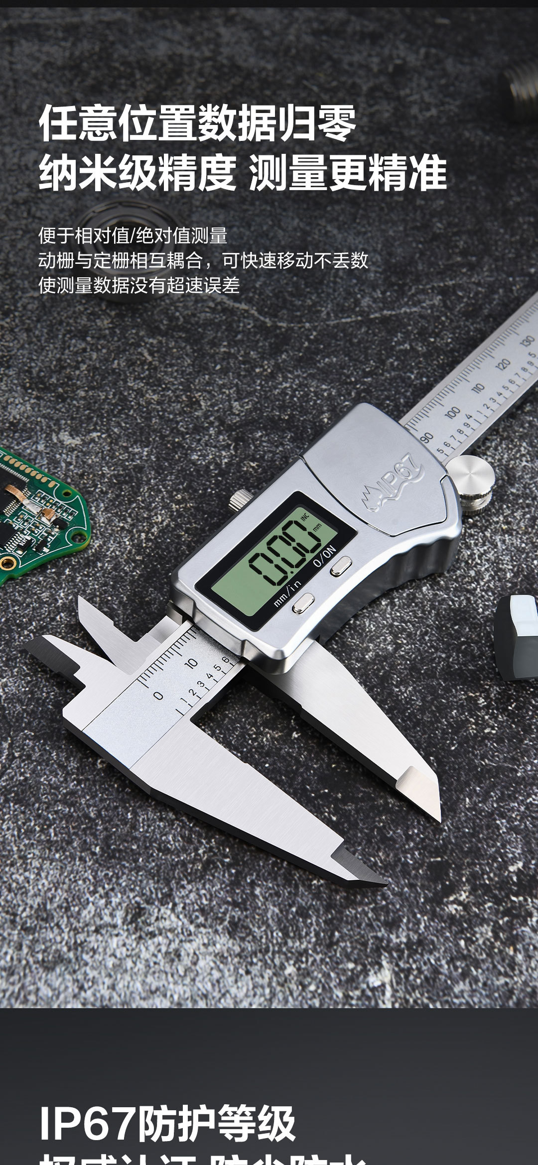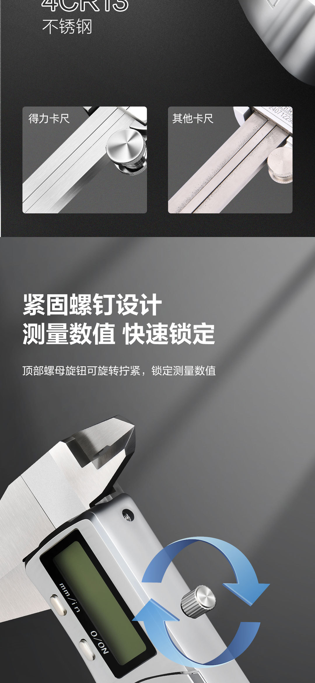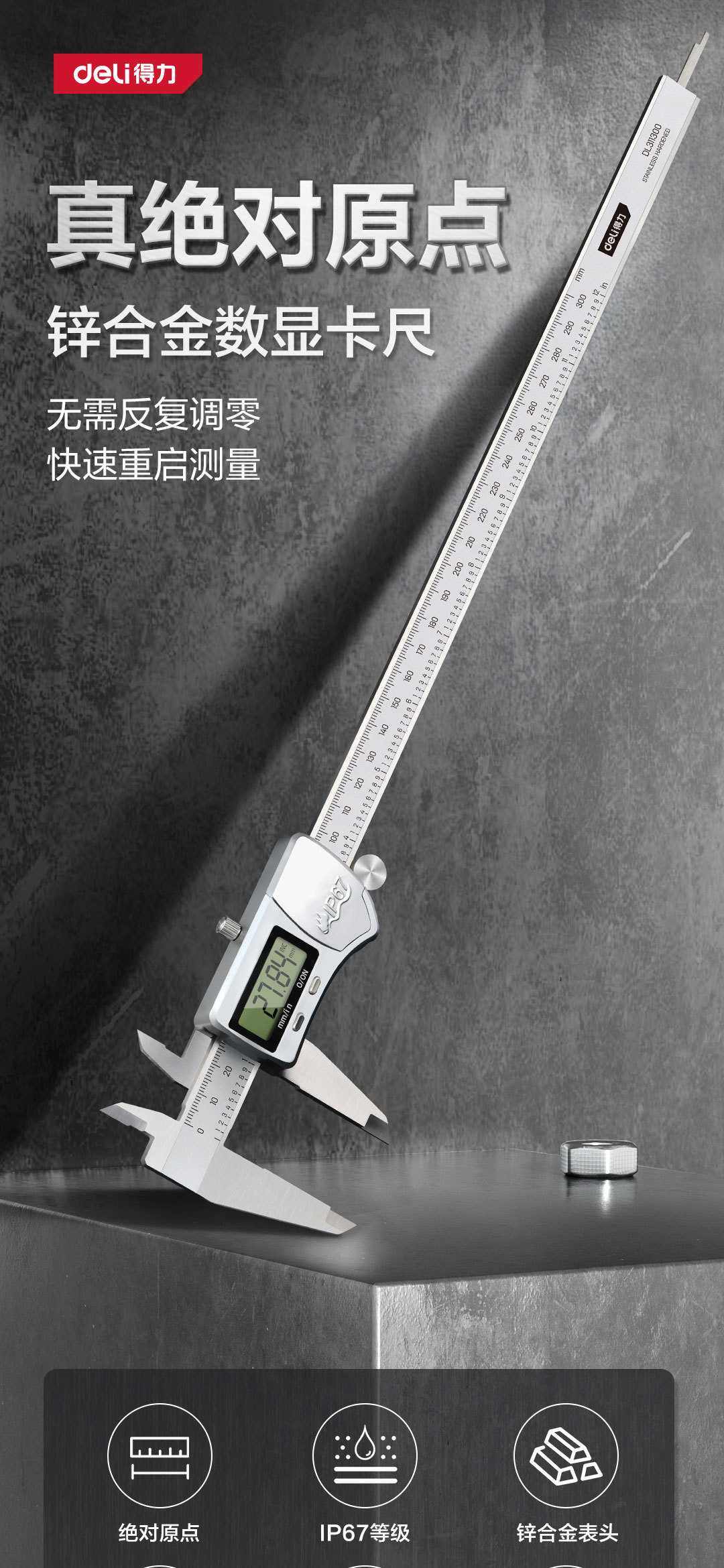 得力工具数显卡尺游标卡尺ip67绝对原点锌合金专业款DL311150