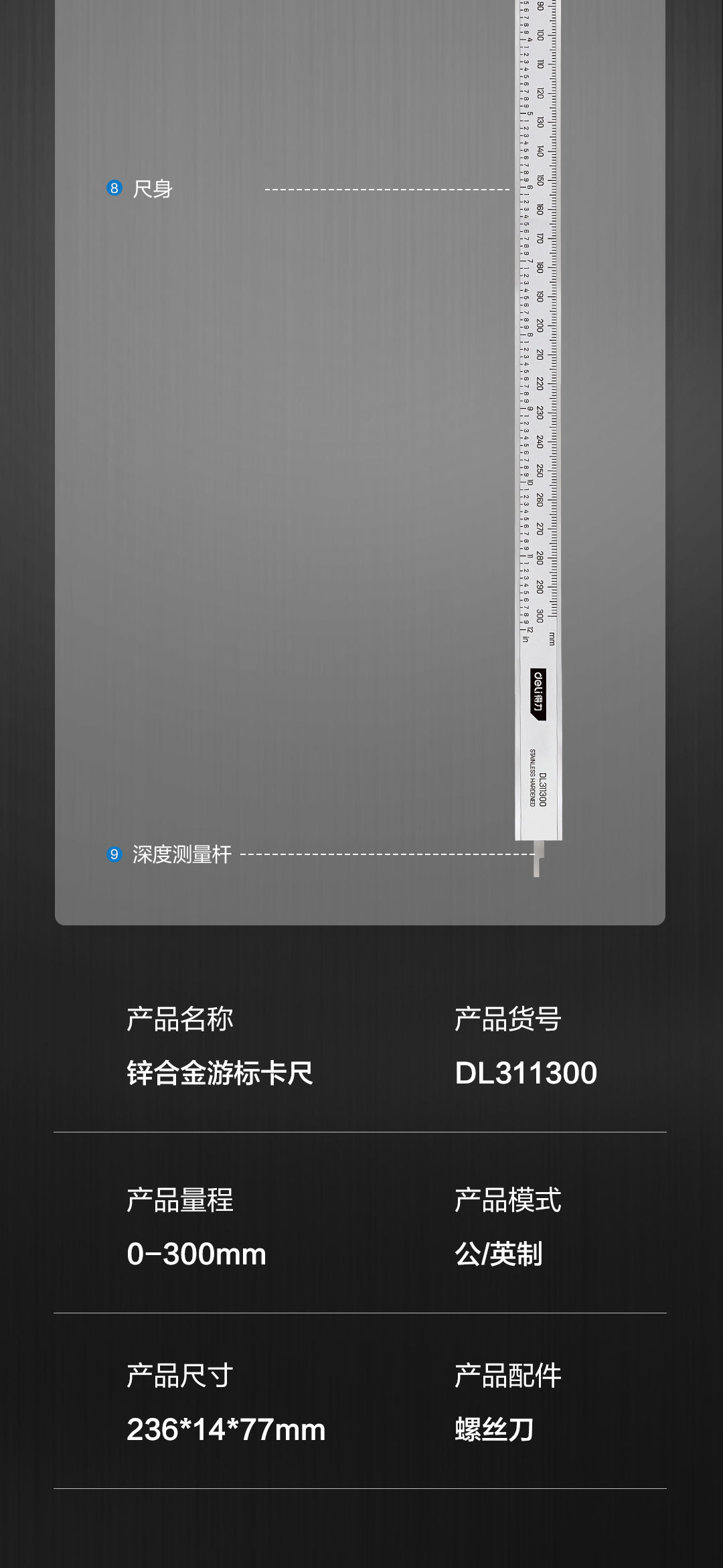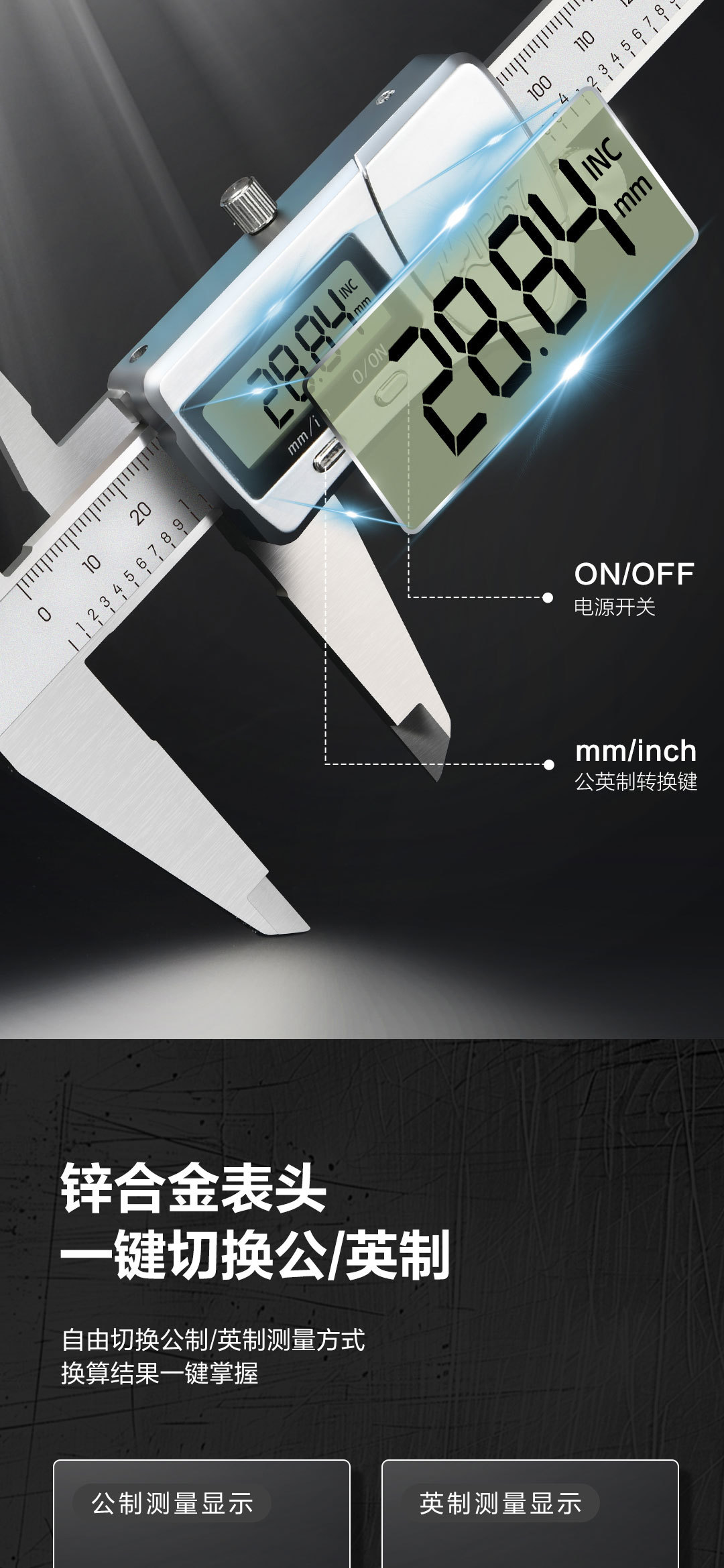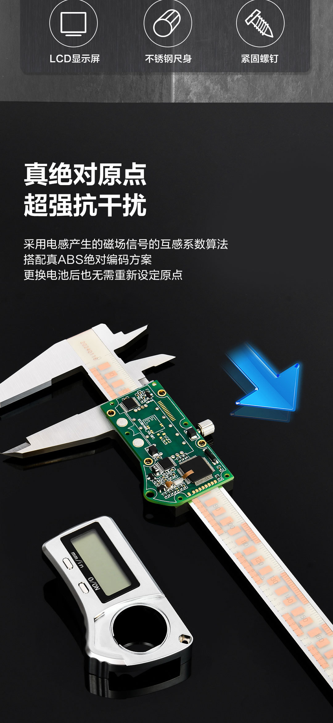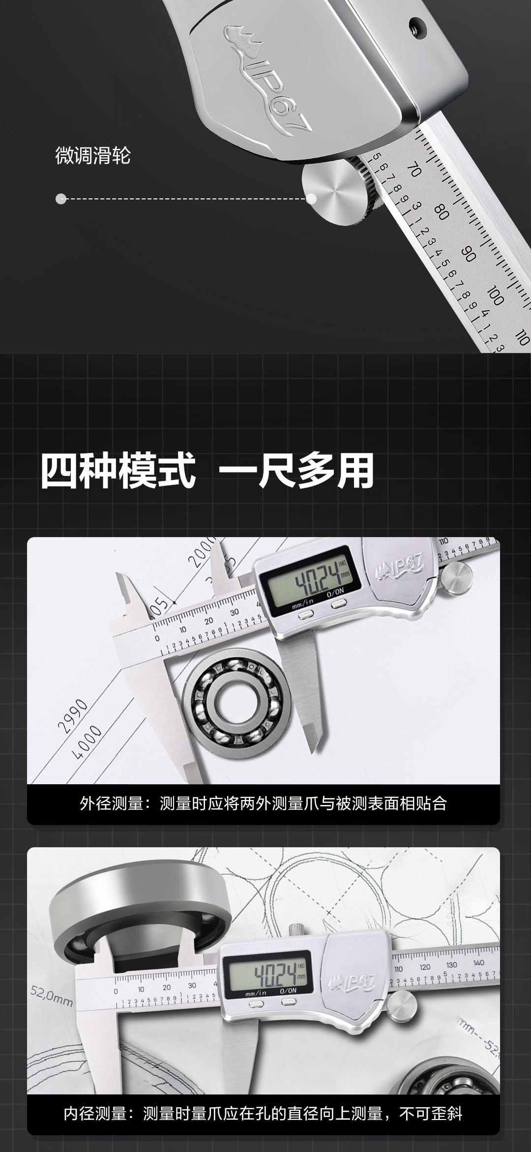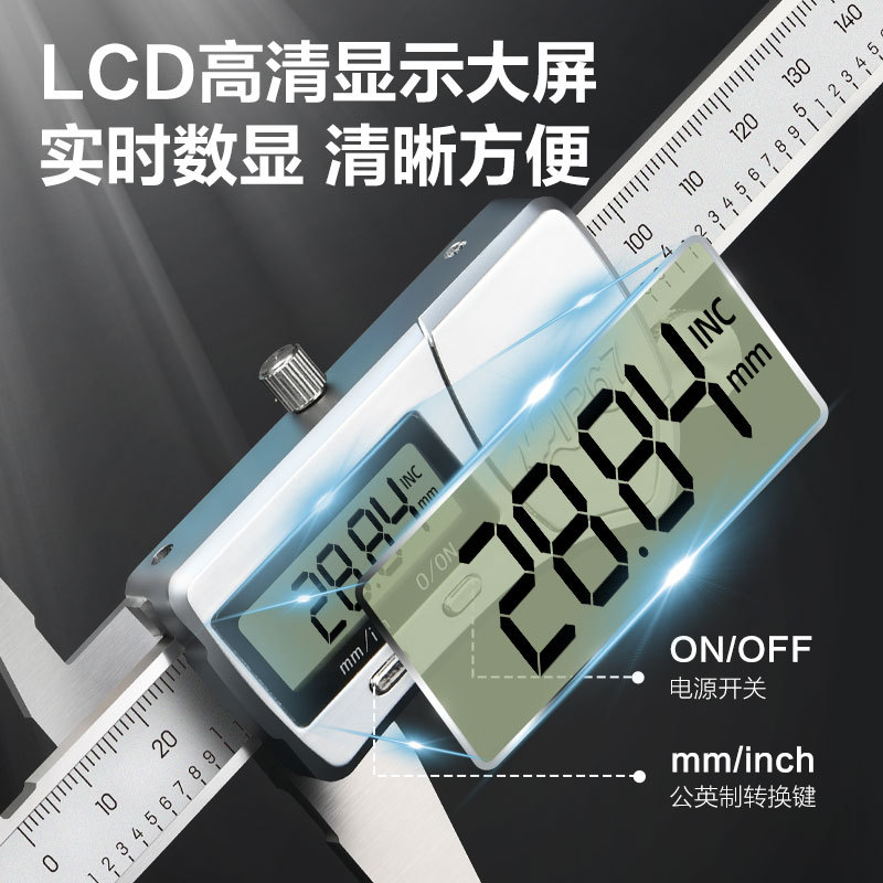 得力工具数显卡尺游标卡尺ip67绝对原点锌合金专业款DL311150