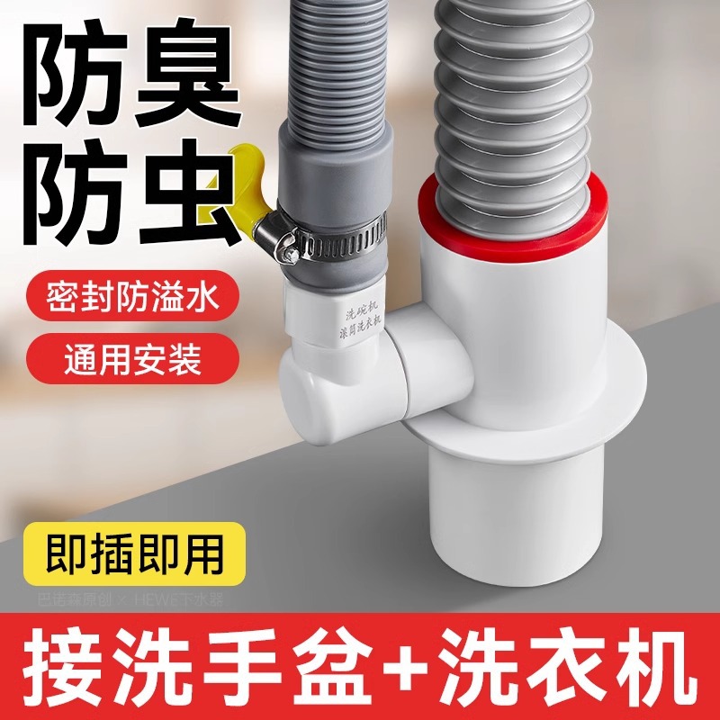 洗衣机下水三通分水器洗手盆池排水管下水管三头通下水道防臭接头