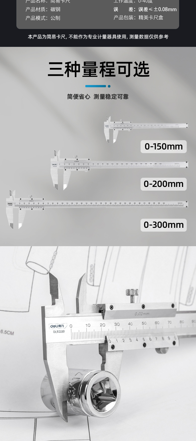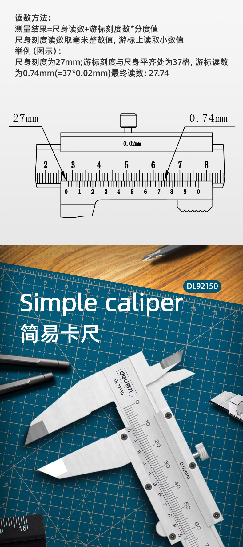 得力工具游标卡尺机械式简易卡尺游标读数内径外径卡尺DL92150