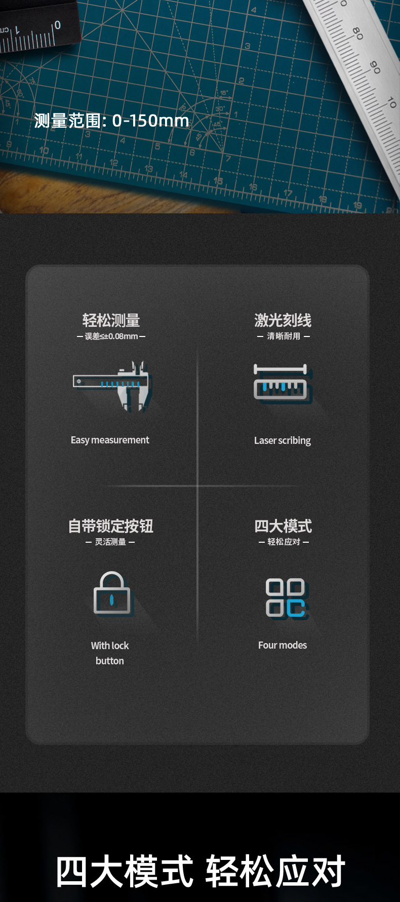 全面屏数显卡尺高精度0-150/200/300mm电子不锈钢游标