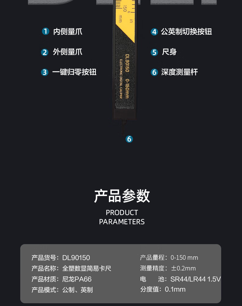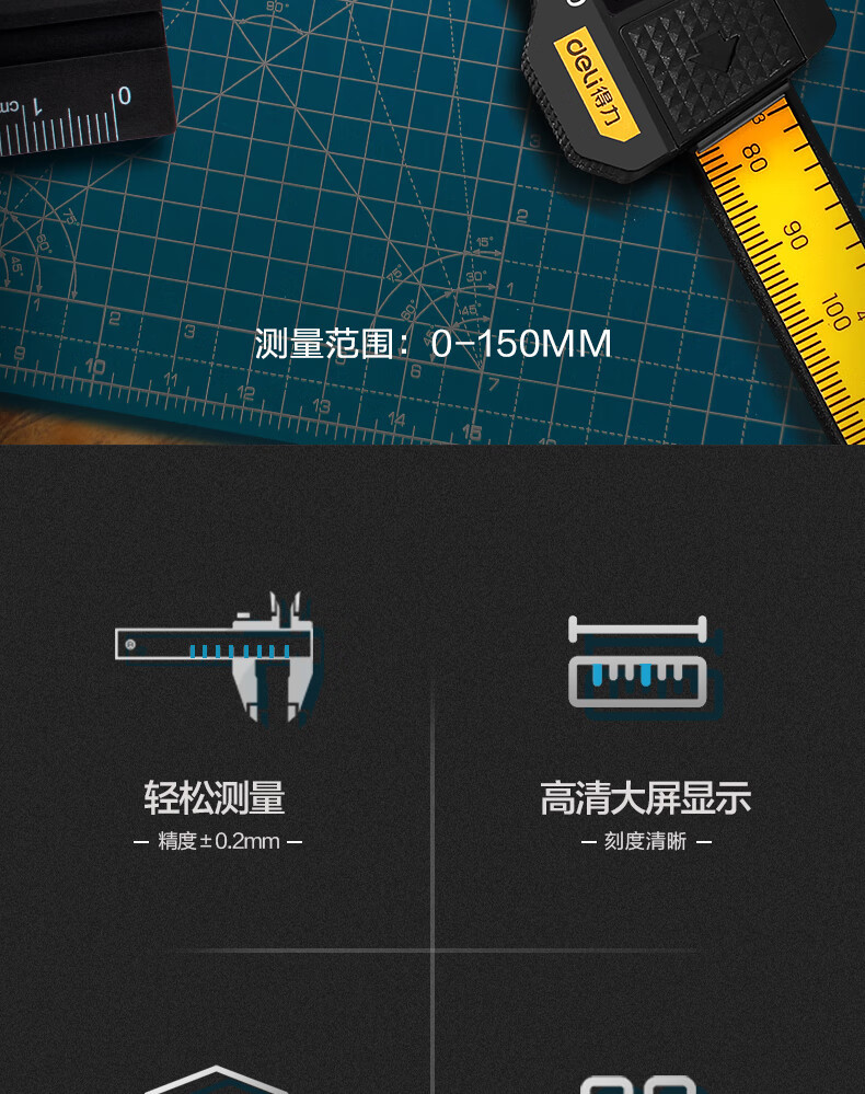 得力 DL90150B 数显游标卡尺高精度大屏文玩翡翠手镯珠宝内外径