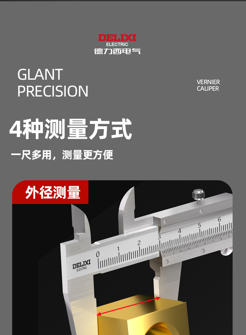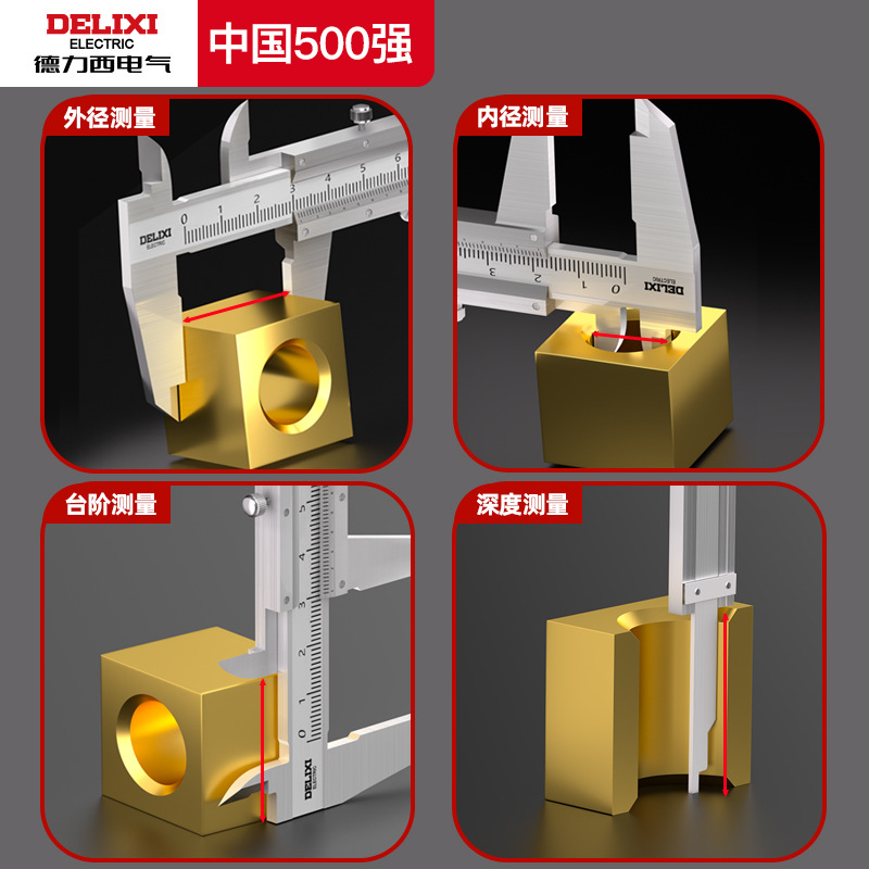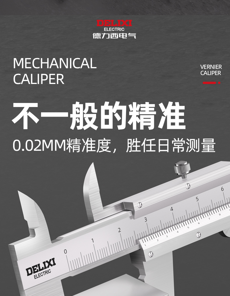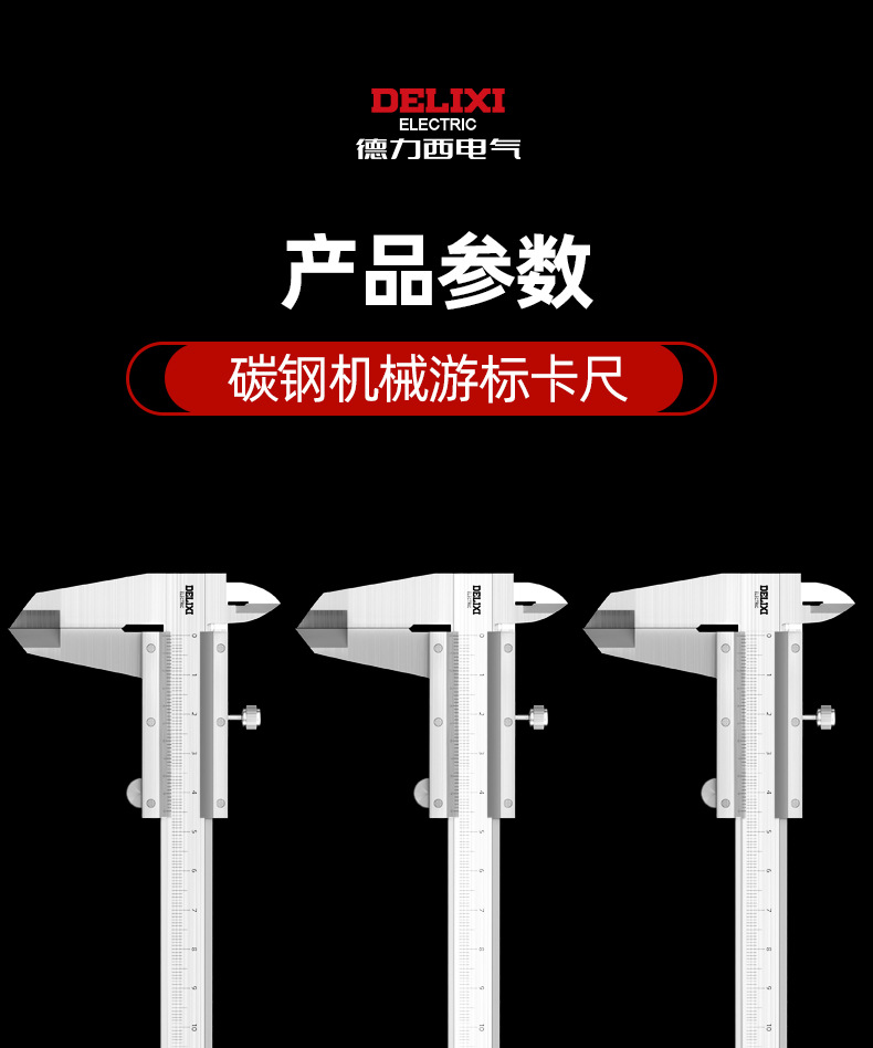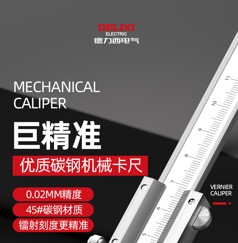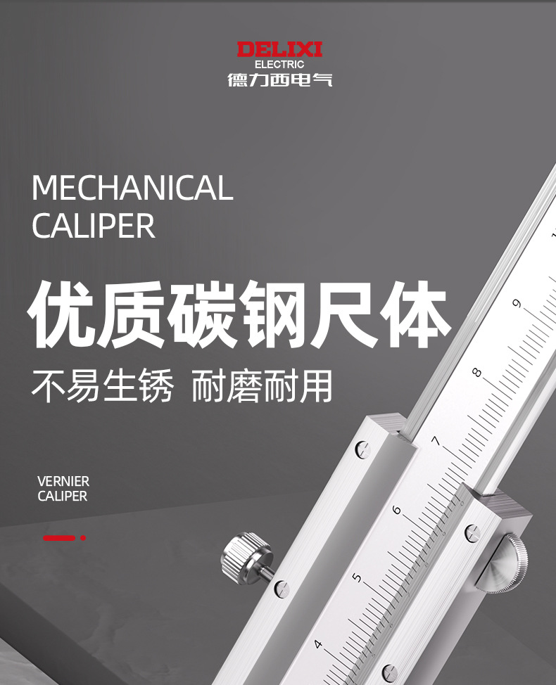 德力西电气不锈钢卡尺高精度工业级0-150-200-300mm机械游标卡尺
