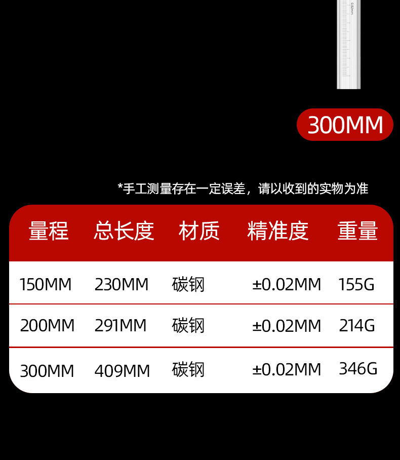 - 【工业级/高精度】0-300mm机械游标卡尺