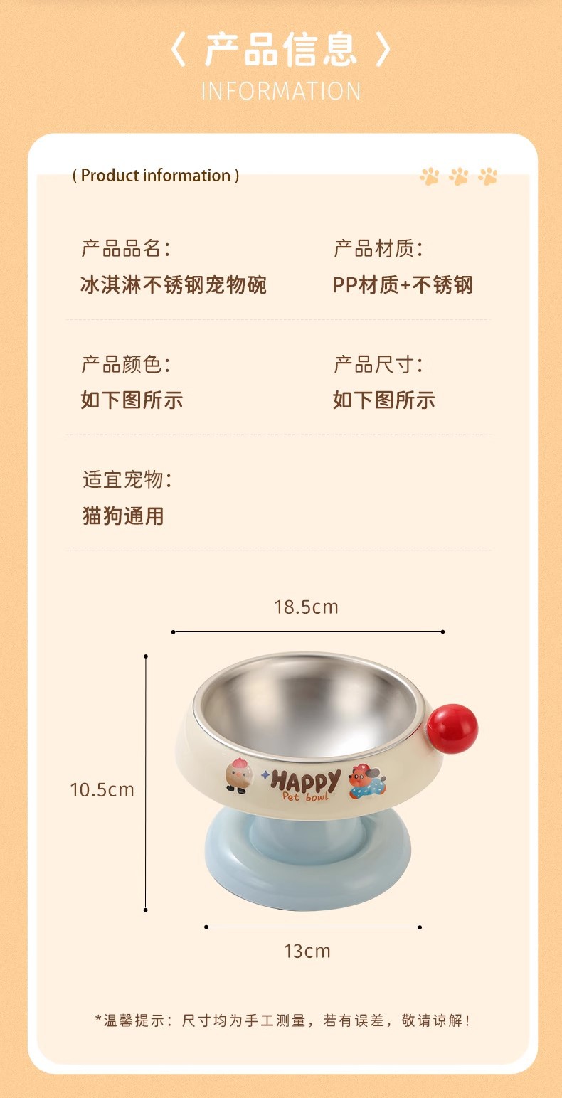【奶油白不锈钢碗】冰淇淋-加高蓝底座